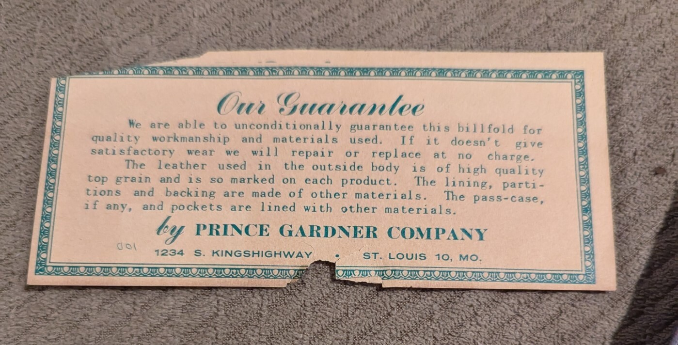 Vintage Prince Gardner Registrar Mens BROWN Bifold Wallet