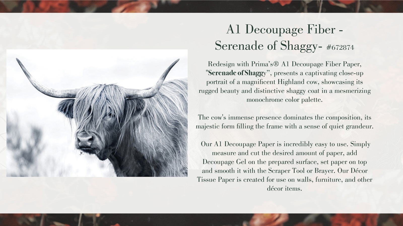 Serenade of Shaggy Highland Cow A1 Fiber Decoupage Redesign with Prima