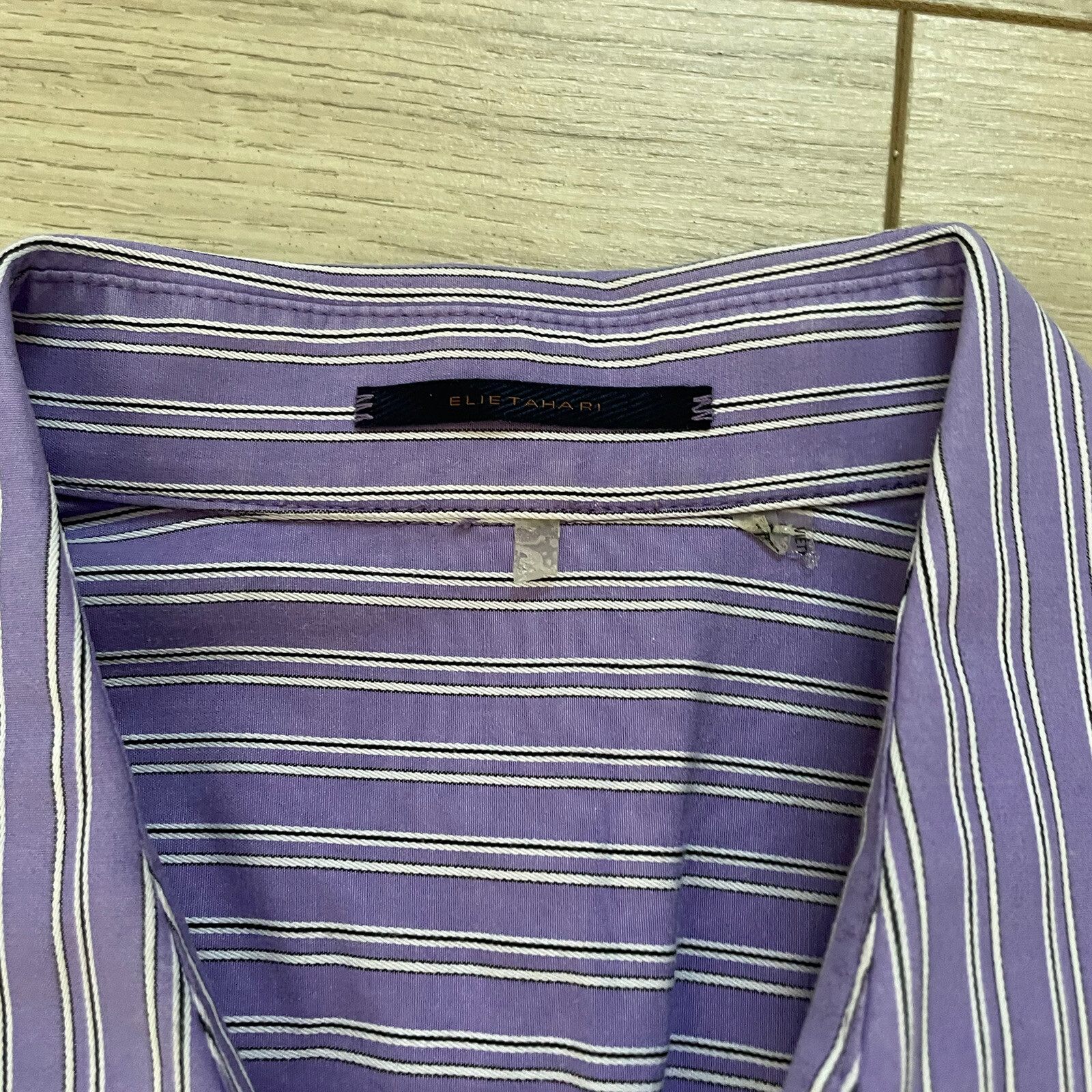 как выглядит Elie Tahari Mens Purple Striped Dress Shirt фото