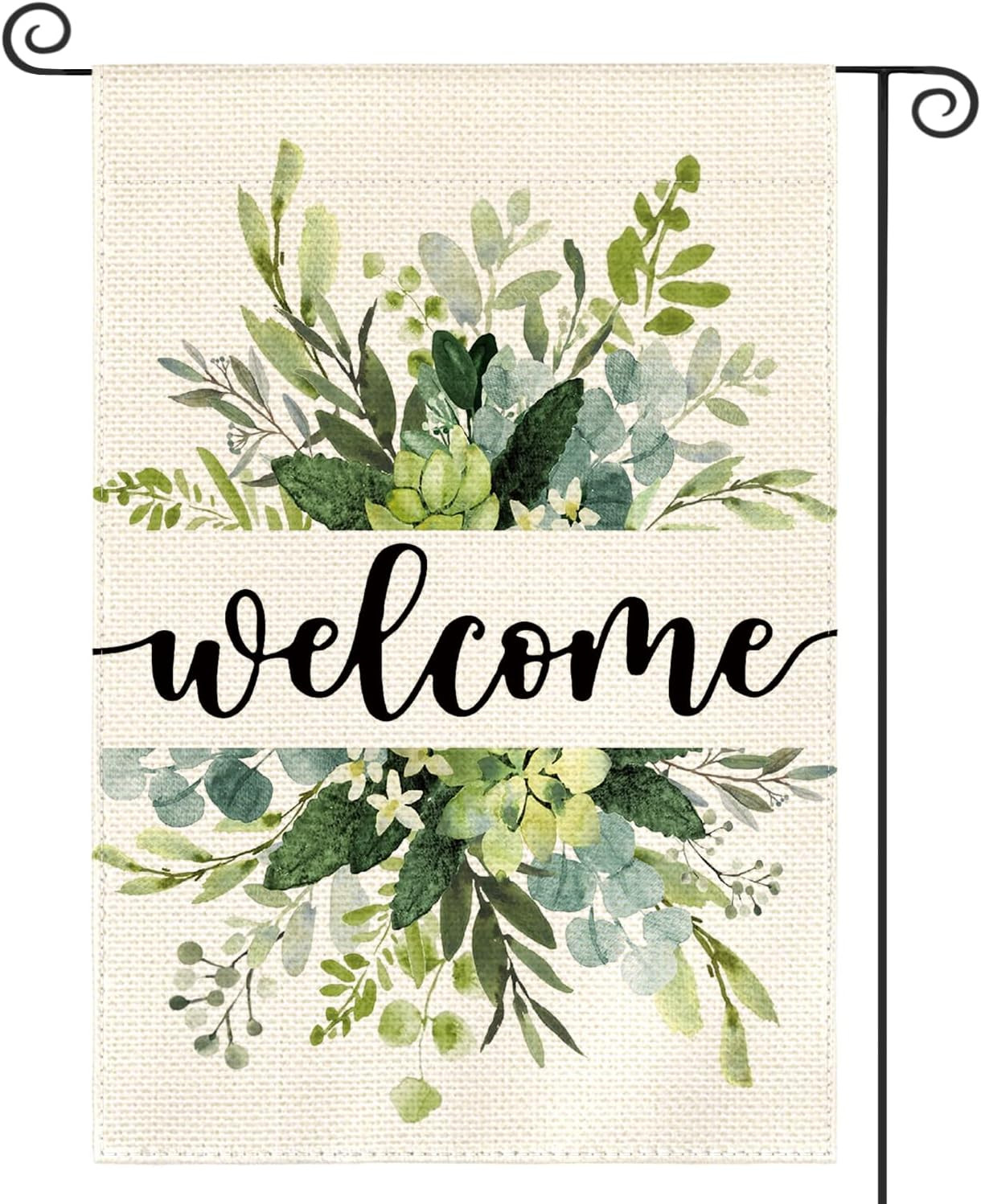 Spring Summer Floral Welcome Garden Flag 12X18 Inch Double Sided Outside, Eucaly