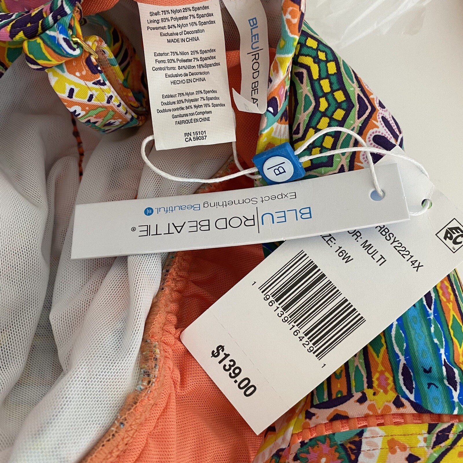 Bleu Rod Beattie Swimsuit Size 16W Seriously Sunny Multicolor X Back V Neck