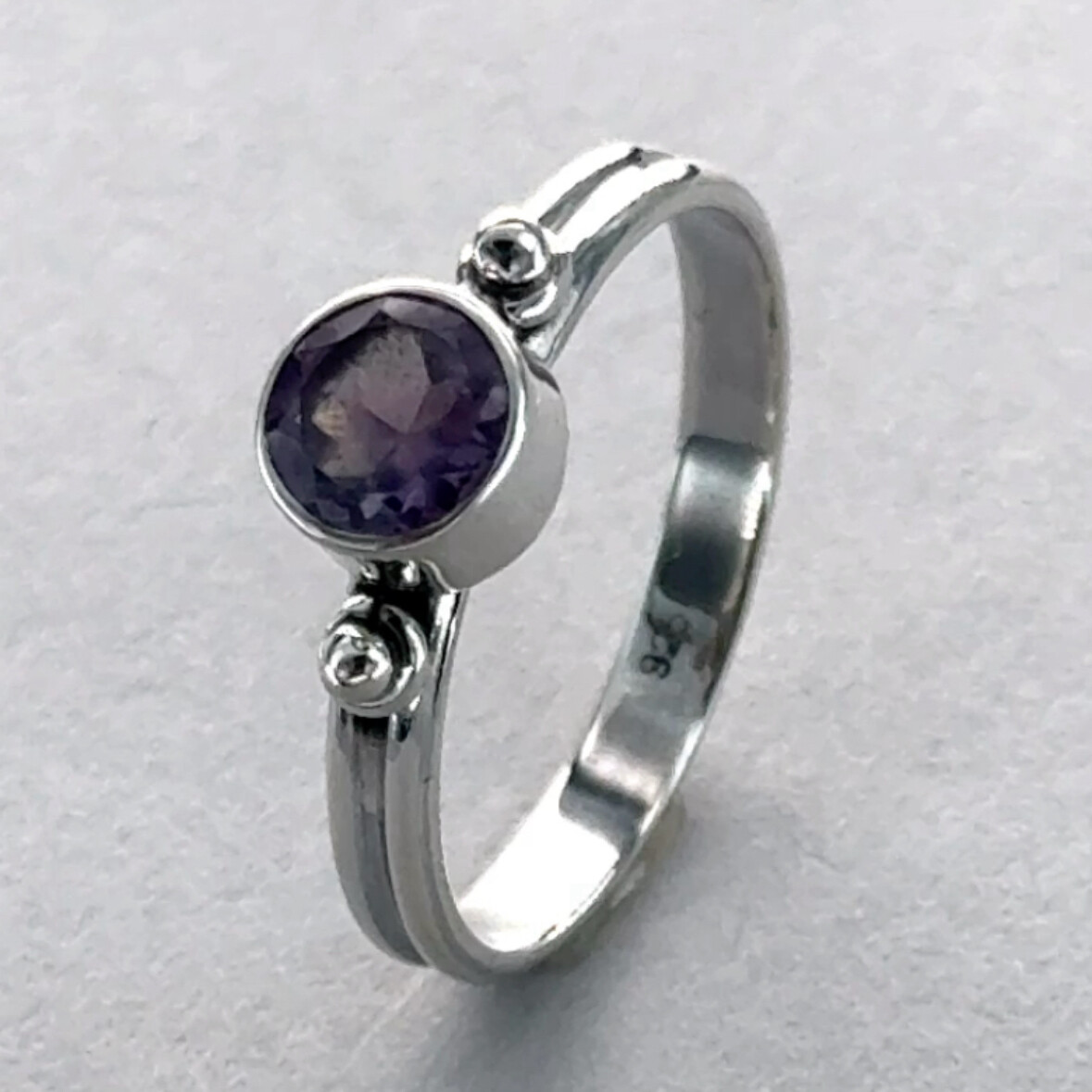 Natural and Round AMETHYST Ring - Multiple Sizes - 925 STERLING SILVER 111e