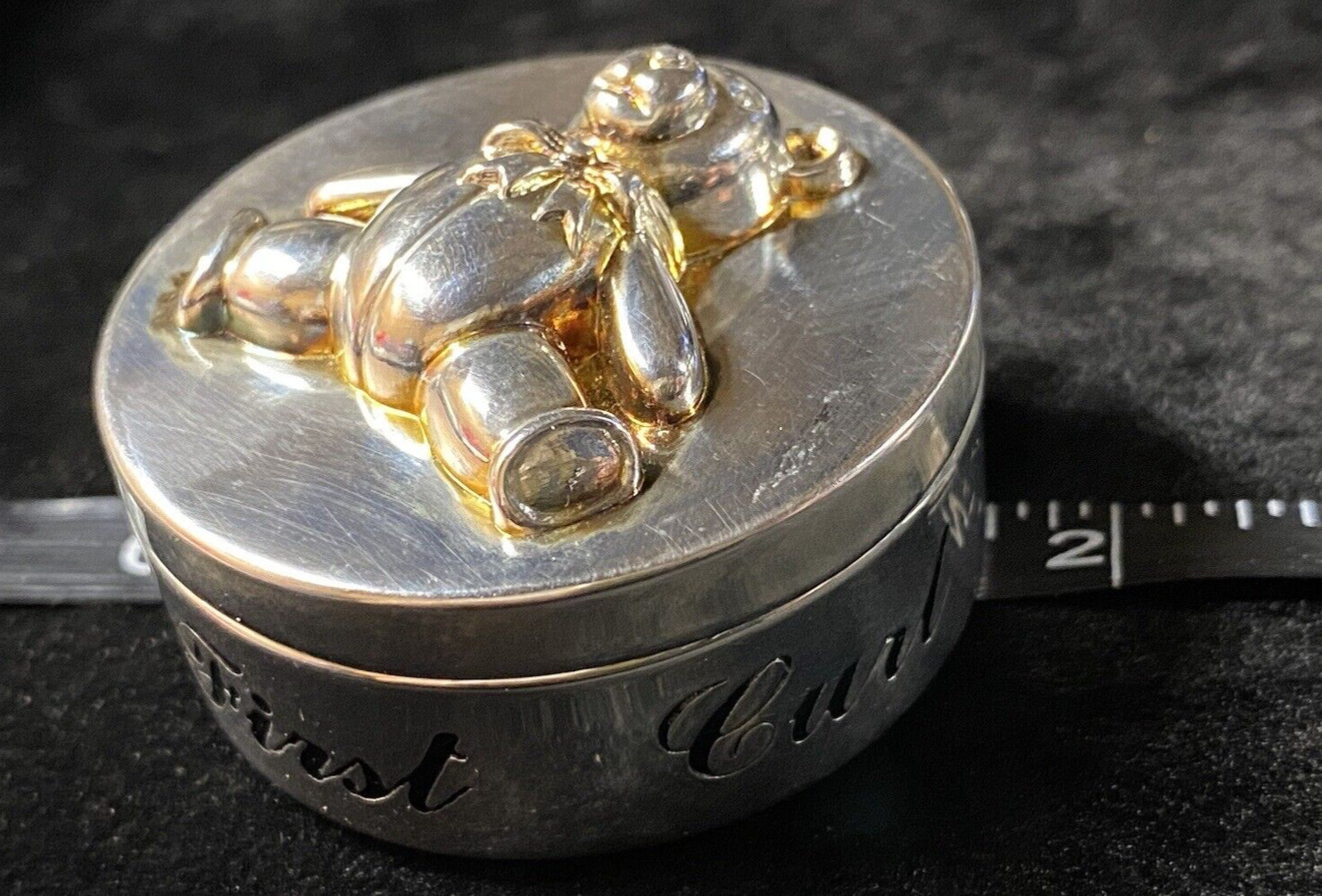 Vintage Silver Plated Red Velvet Keepsake Trinket Boxes Child s First Tooth Curl