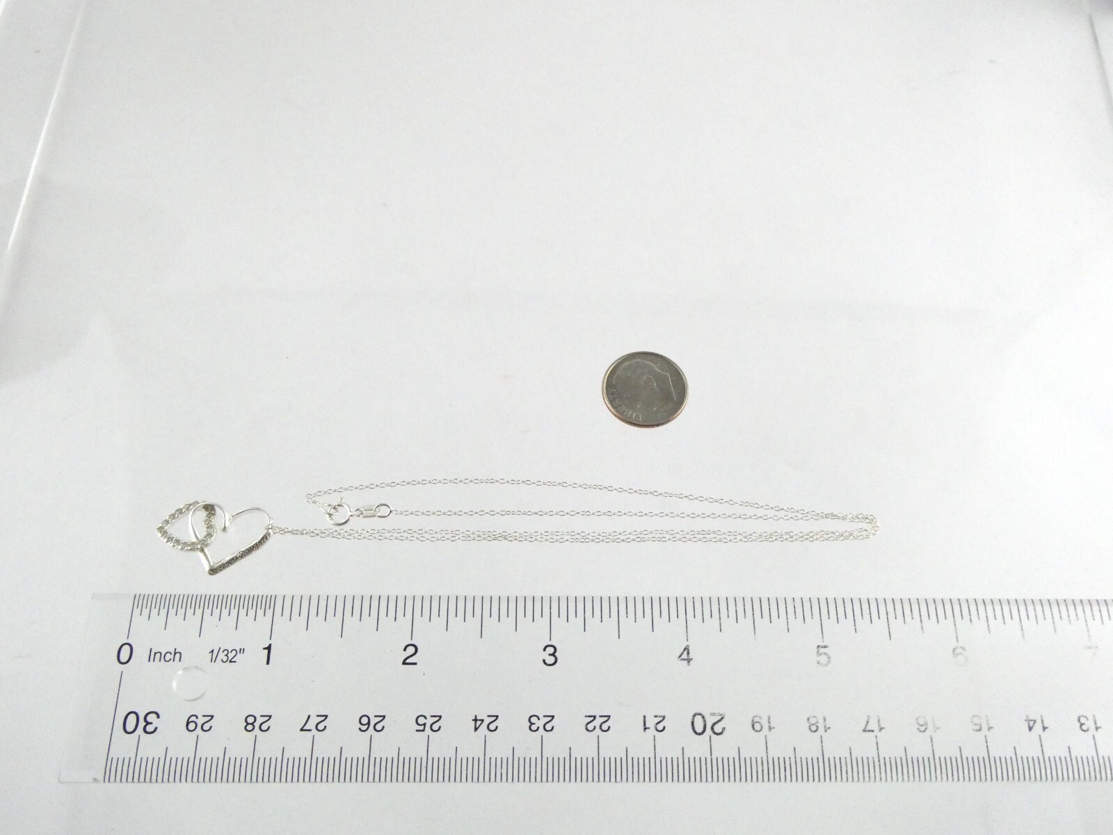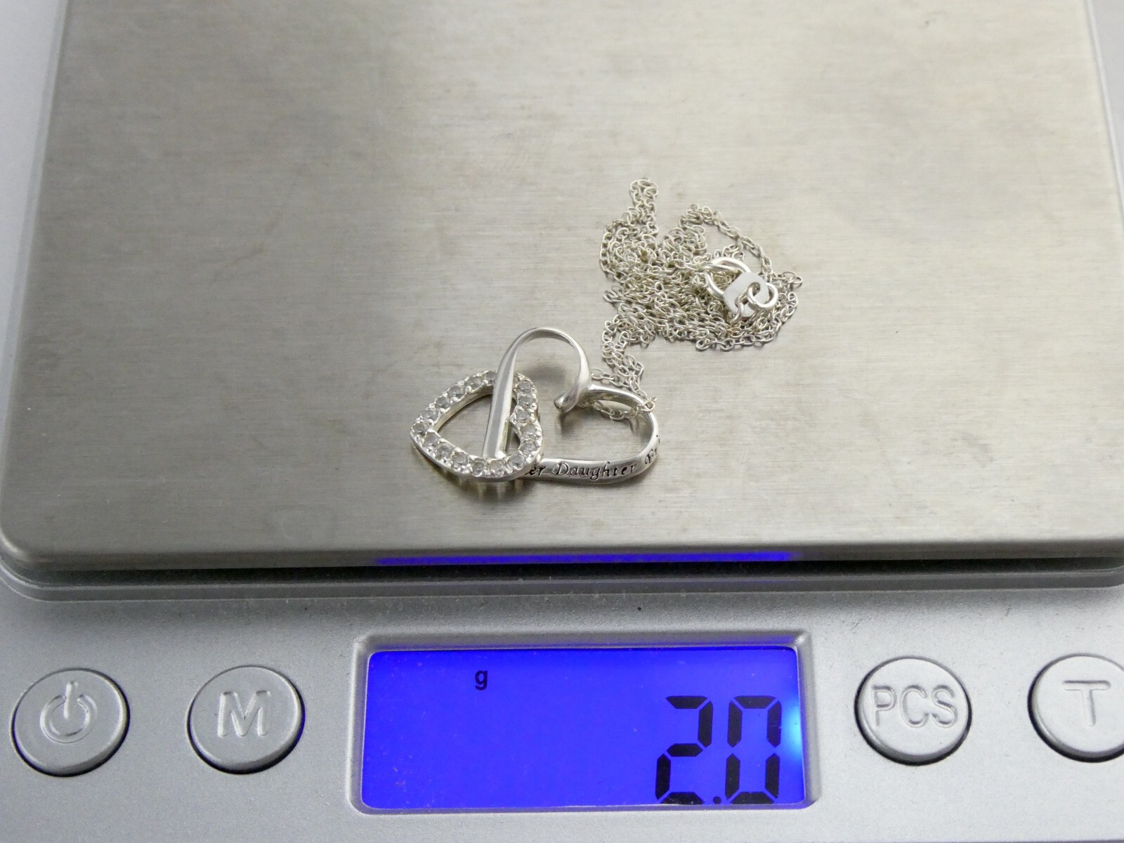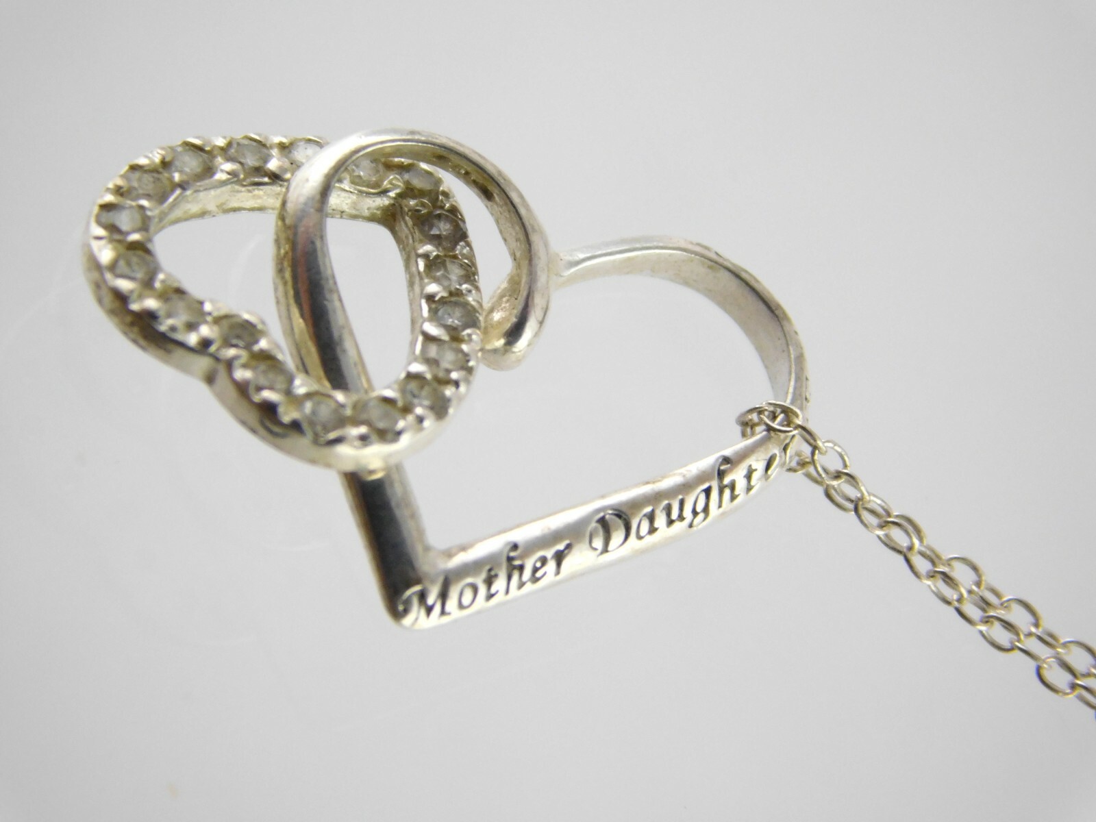 как выглядит Sterling Silver Mother and Daughter Double Heart CZ Pendant Necklace 925 2g фото