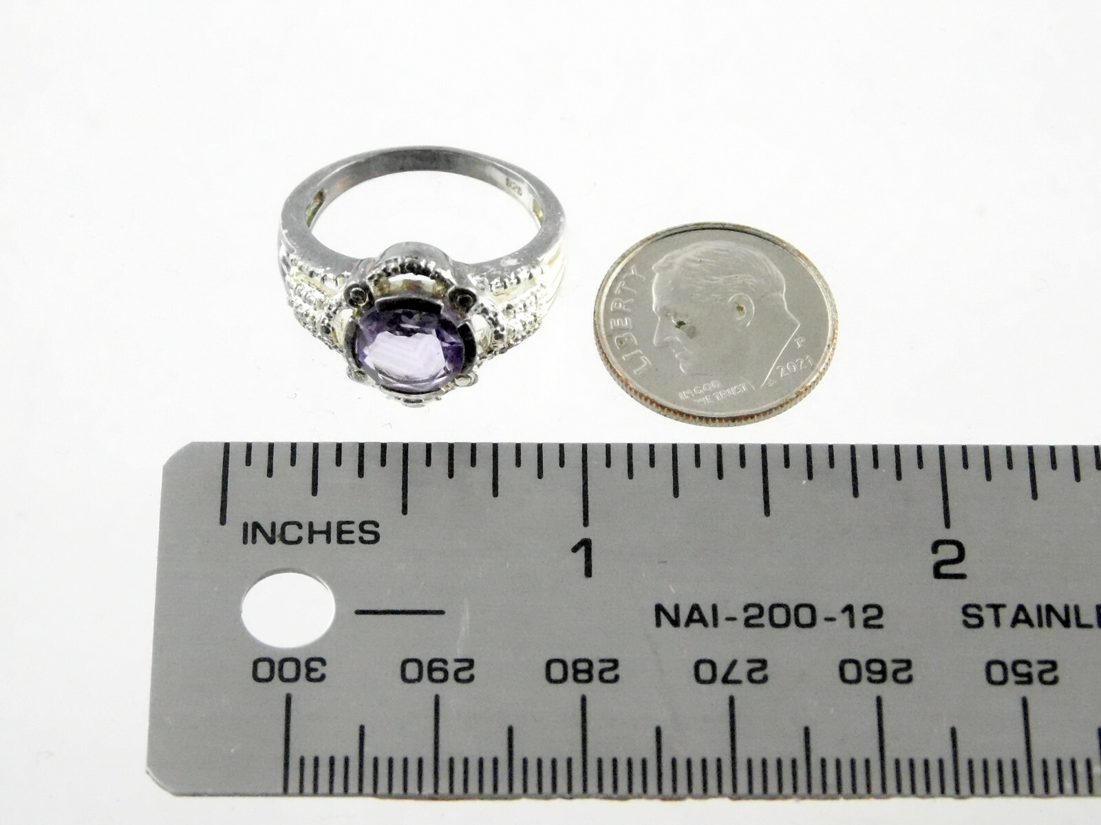 как выглядит Sterling Silver Round Cut Amethyst Ring 925 Size 6.75 Weighs 4.7g Weight фото