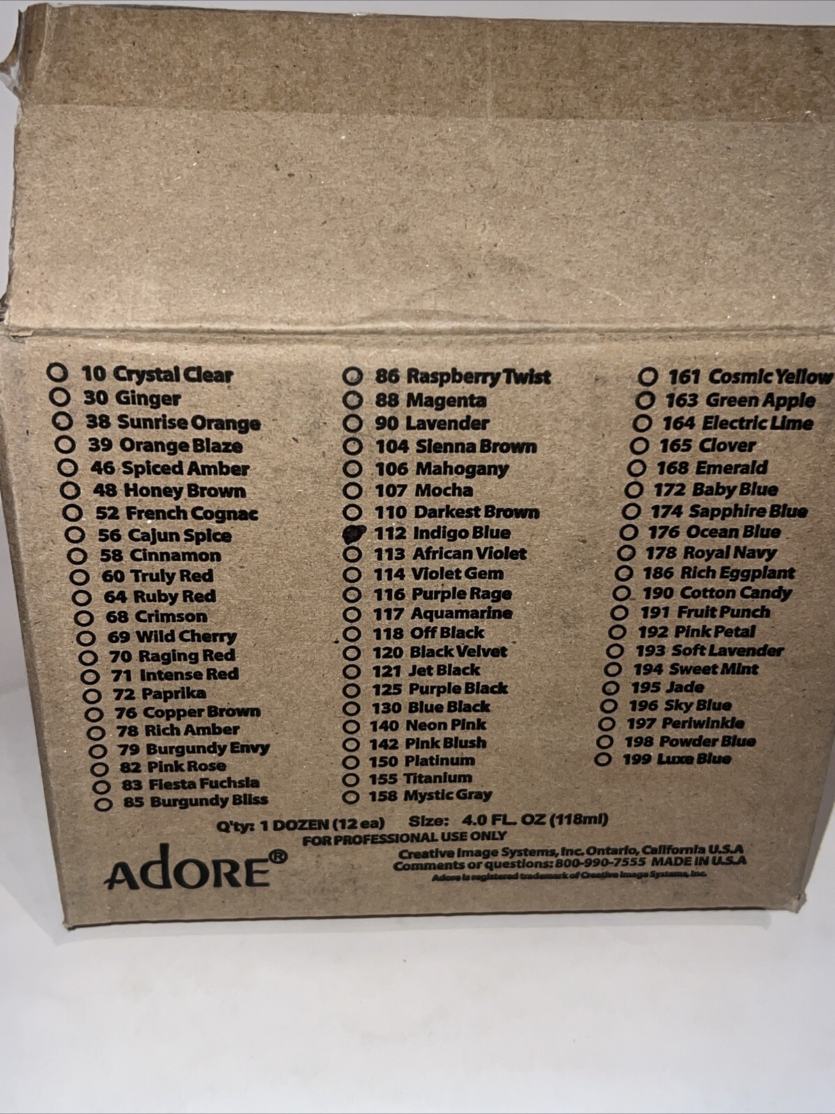 12 pack Adore Semi Permanent Hair Dye 112 INDIGO BLUE Color 4oz, 118mL FREE SH
