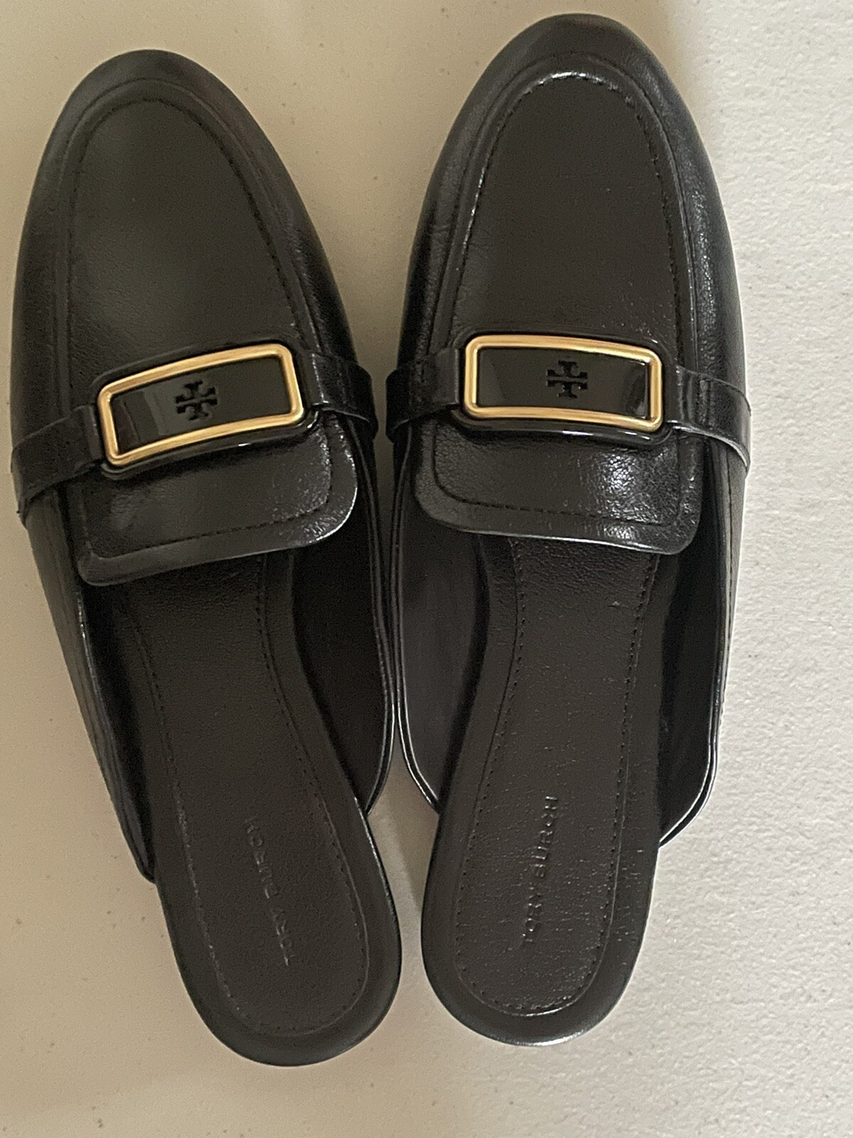 как выглядит TORY BURCH GEORGIA CALF LEATHER MULES LOAFERS IN PERFECT BLACK US SIZE 10M фото