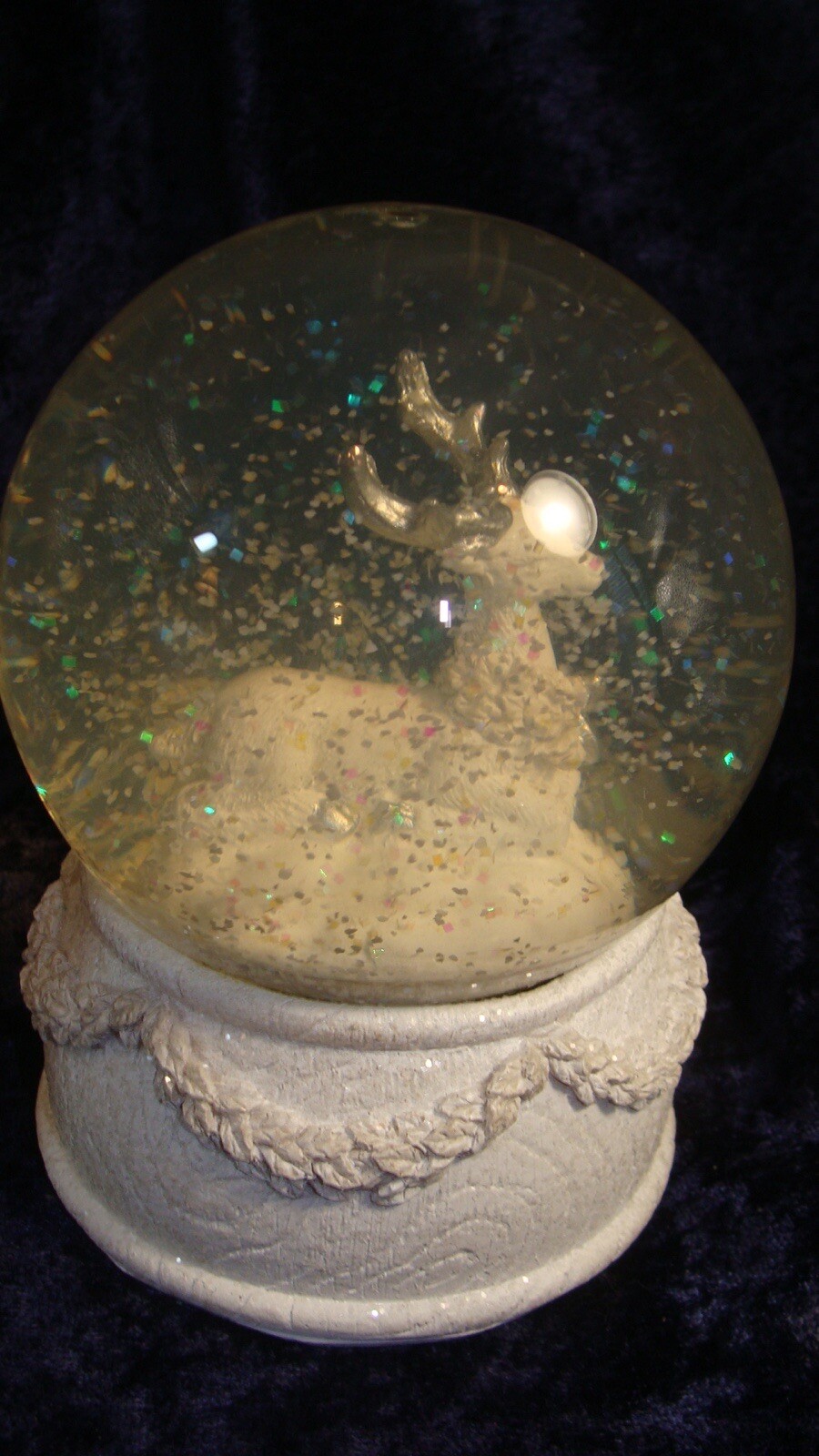 как выглядит REINDEER SNOW GLOBE 4 x 5  Very Great Condition Has Glare From Light фото
