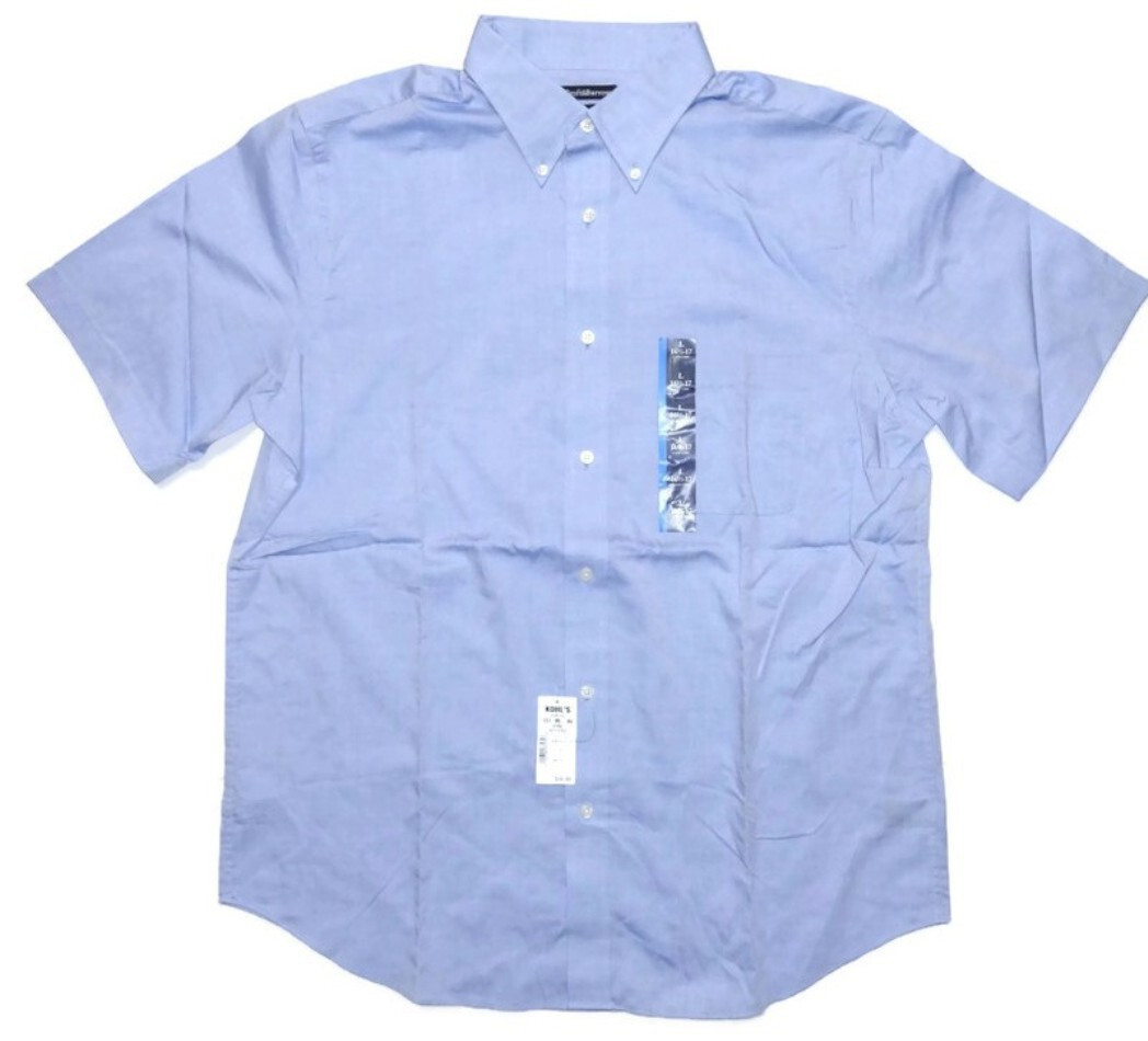 New Croft Barrow Mens Shirt Classic-Fit Short Sleeve Easy Care Blue Size Large