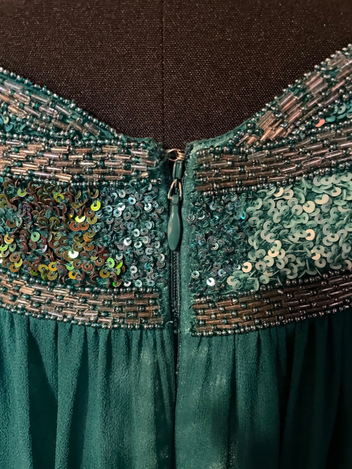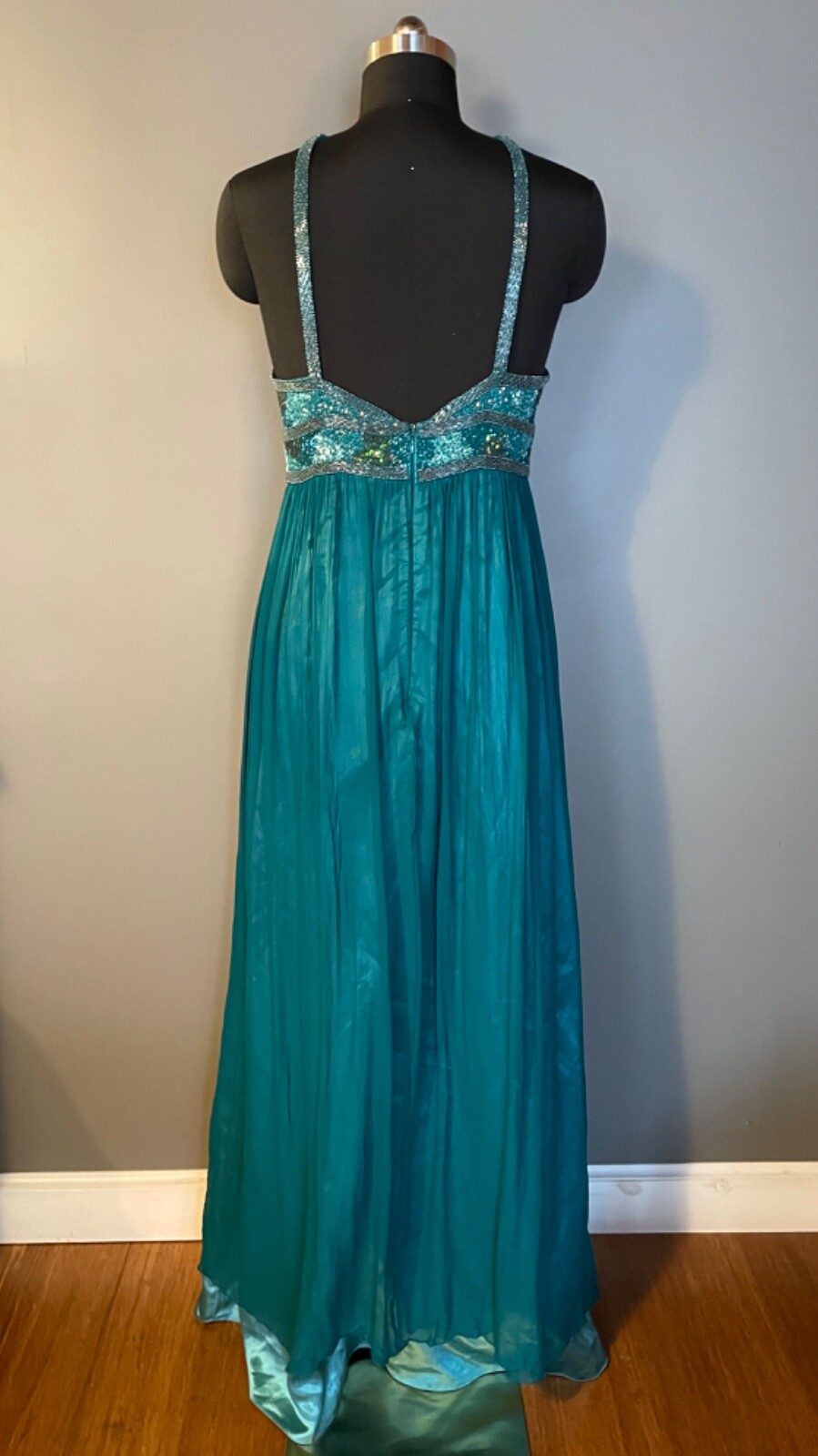 Gorgeous Adrianna Papell Evening Gown Beaded Sequins Turquoise Dress Prom Formal