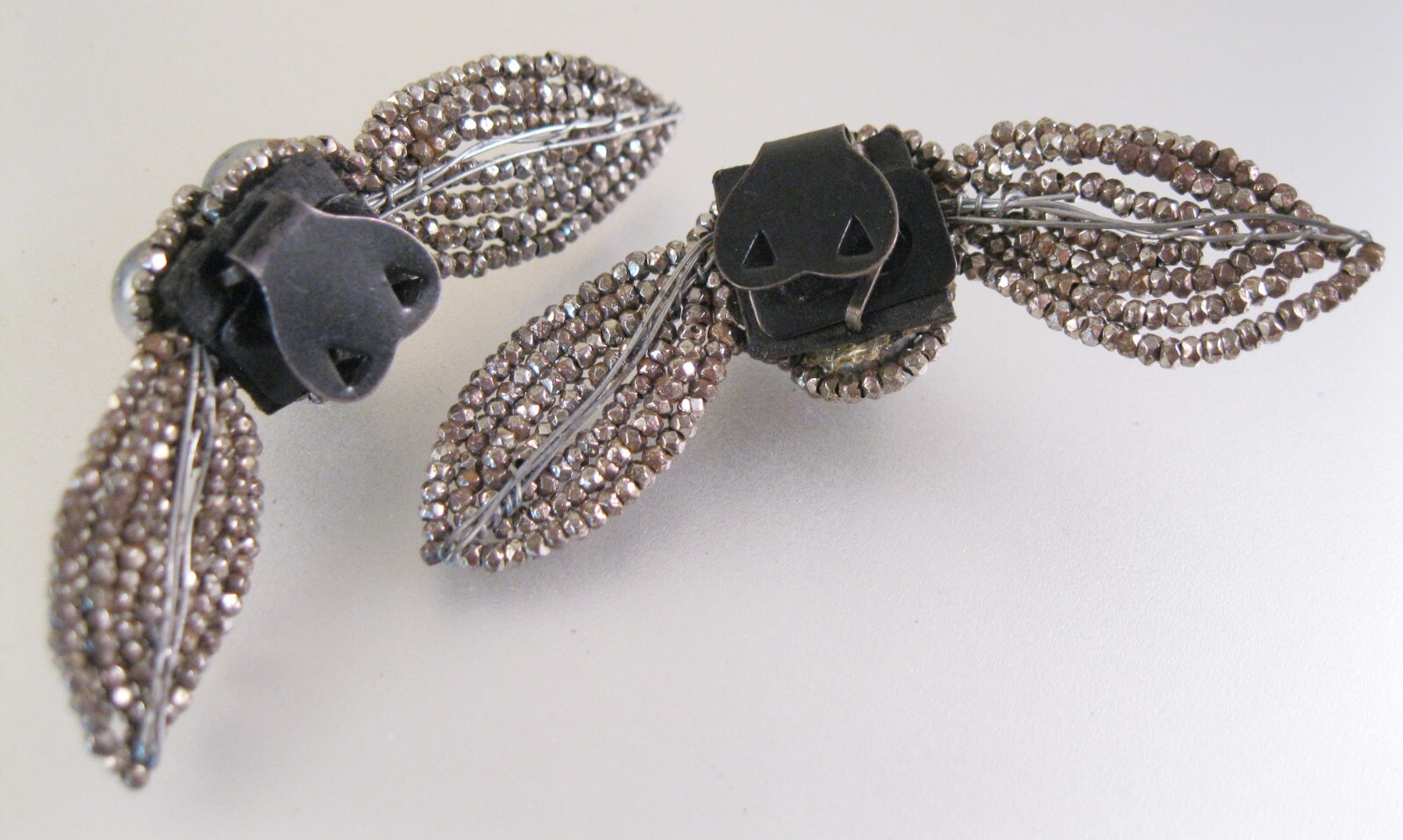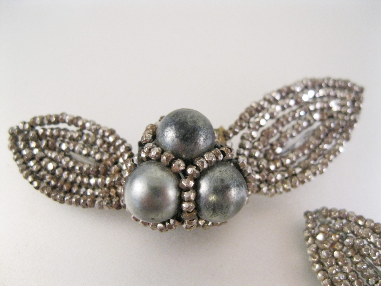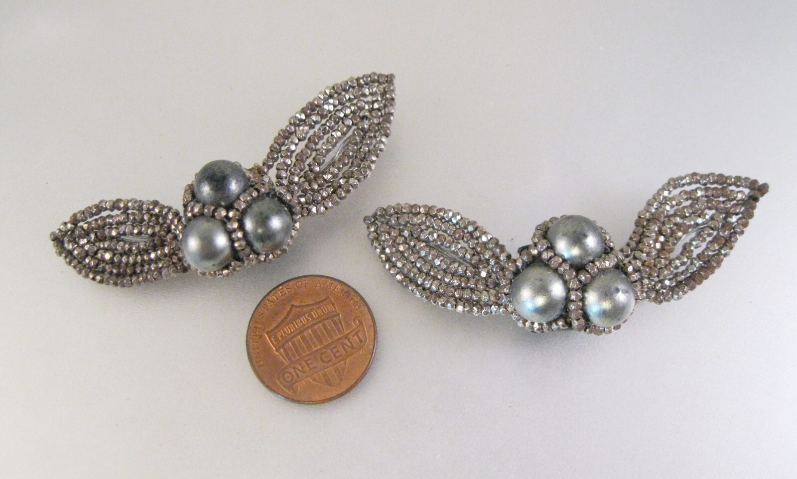 Antique Victorian Cut Steel Leaf Floral Shoe Clips 1800s Accessories 1800's