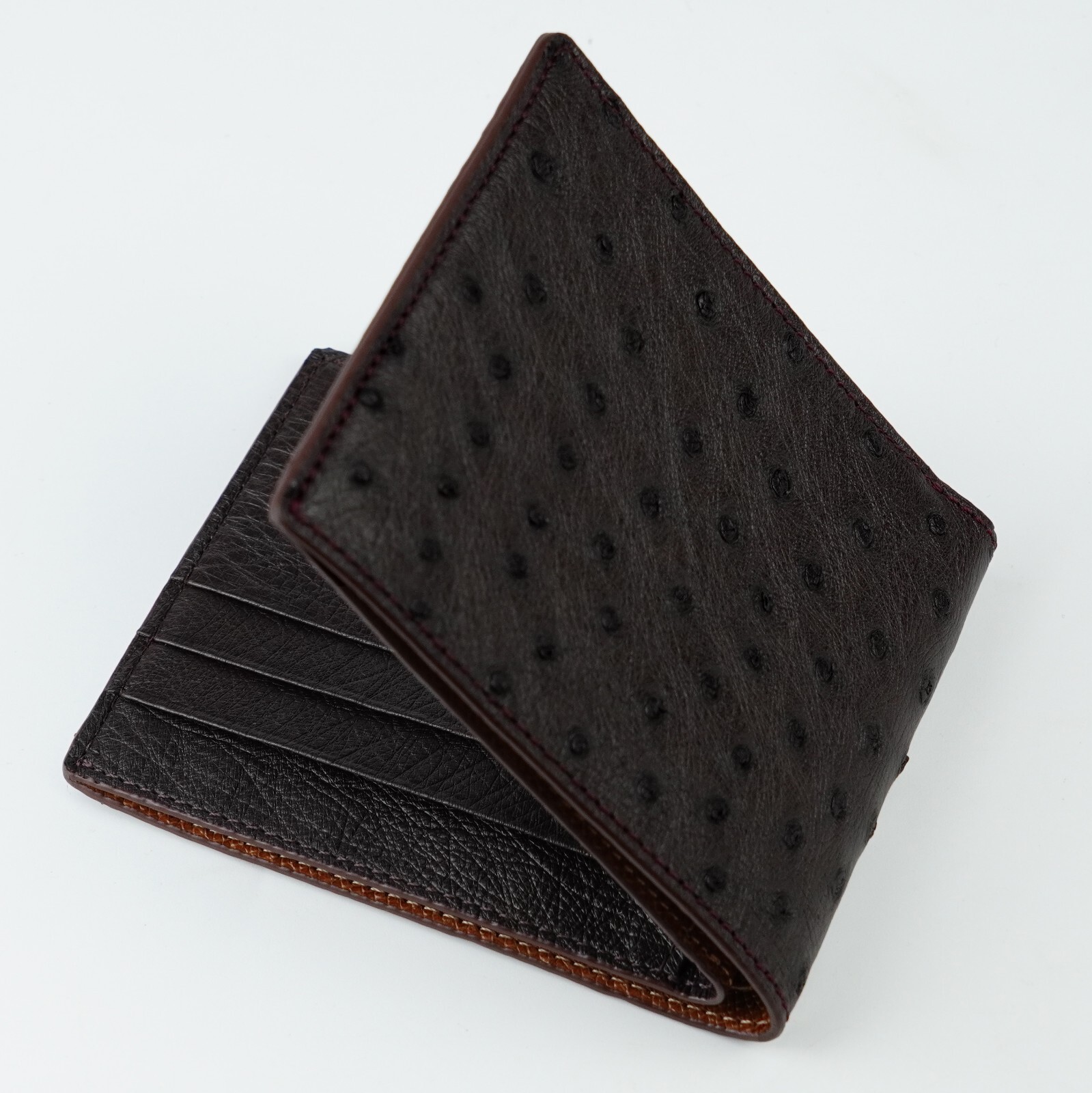 как выглядит Brown Real Ostrich Skin Leather Wallet Exotic Men