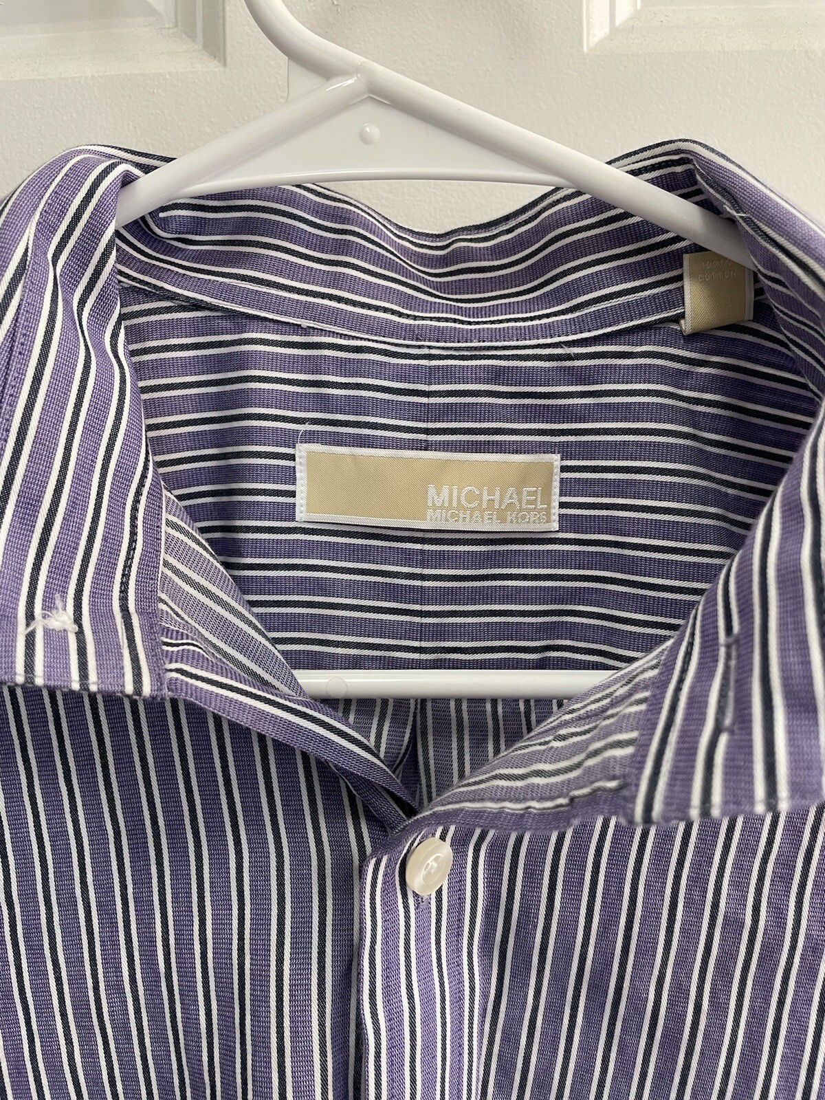 как выглядит Michael Kors Mens Dress Shirt Purple Vertical Stripes Size 15 1/2 32,33 Regular фото
