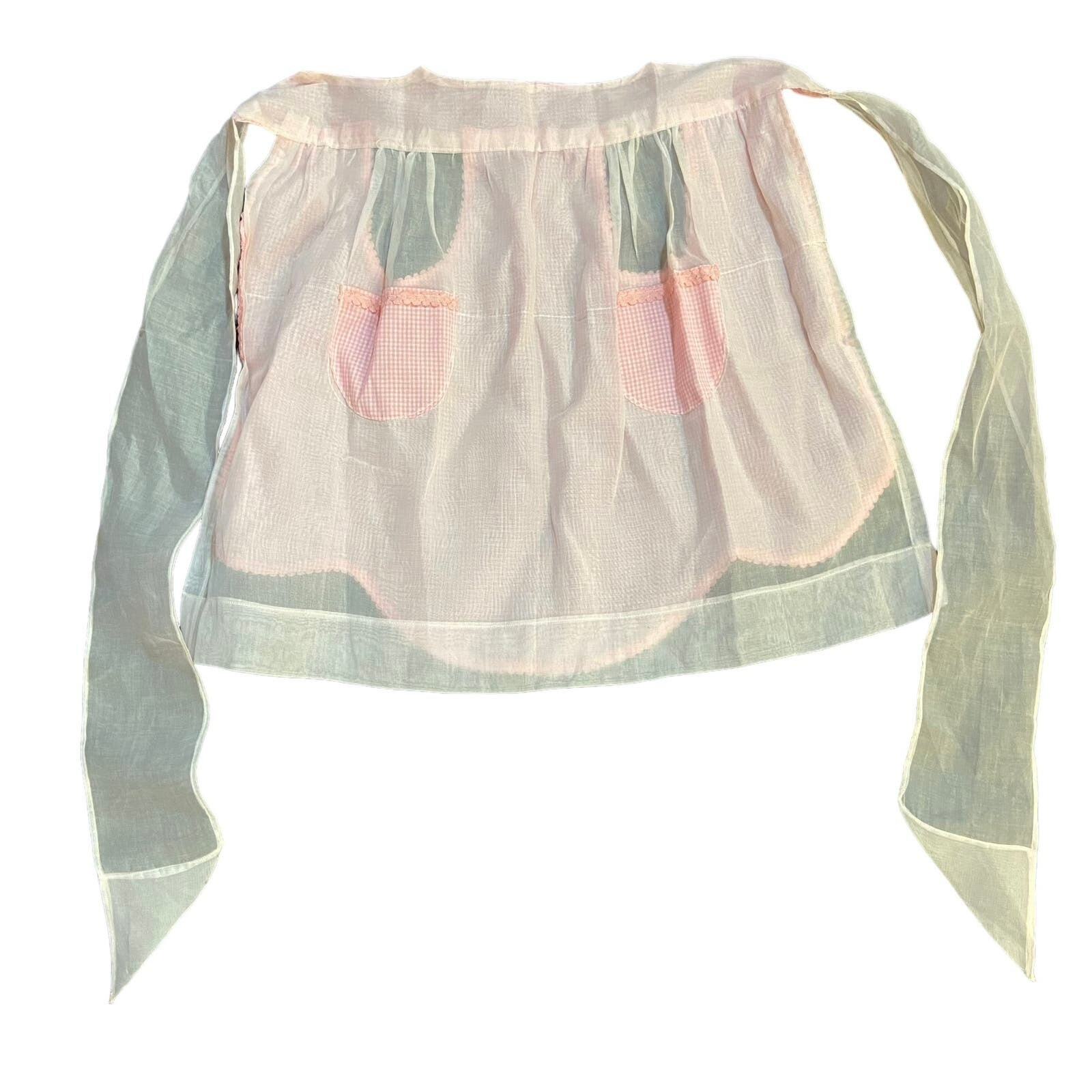 как выглядит 50 s Vintage Pink Cotton Organza Hostess Apron фото