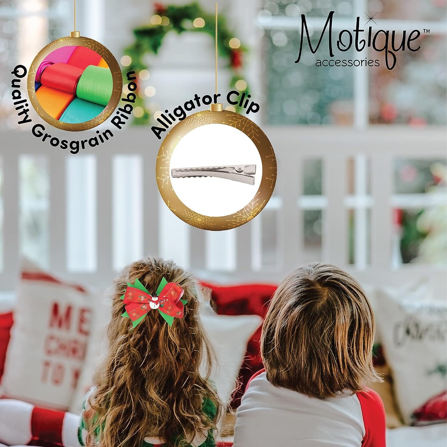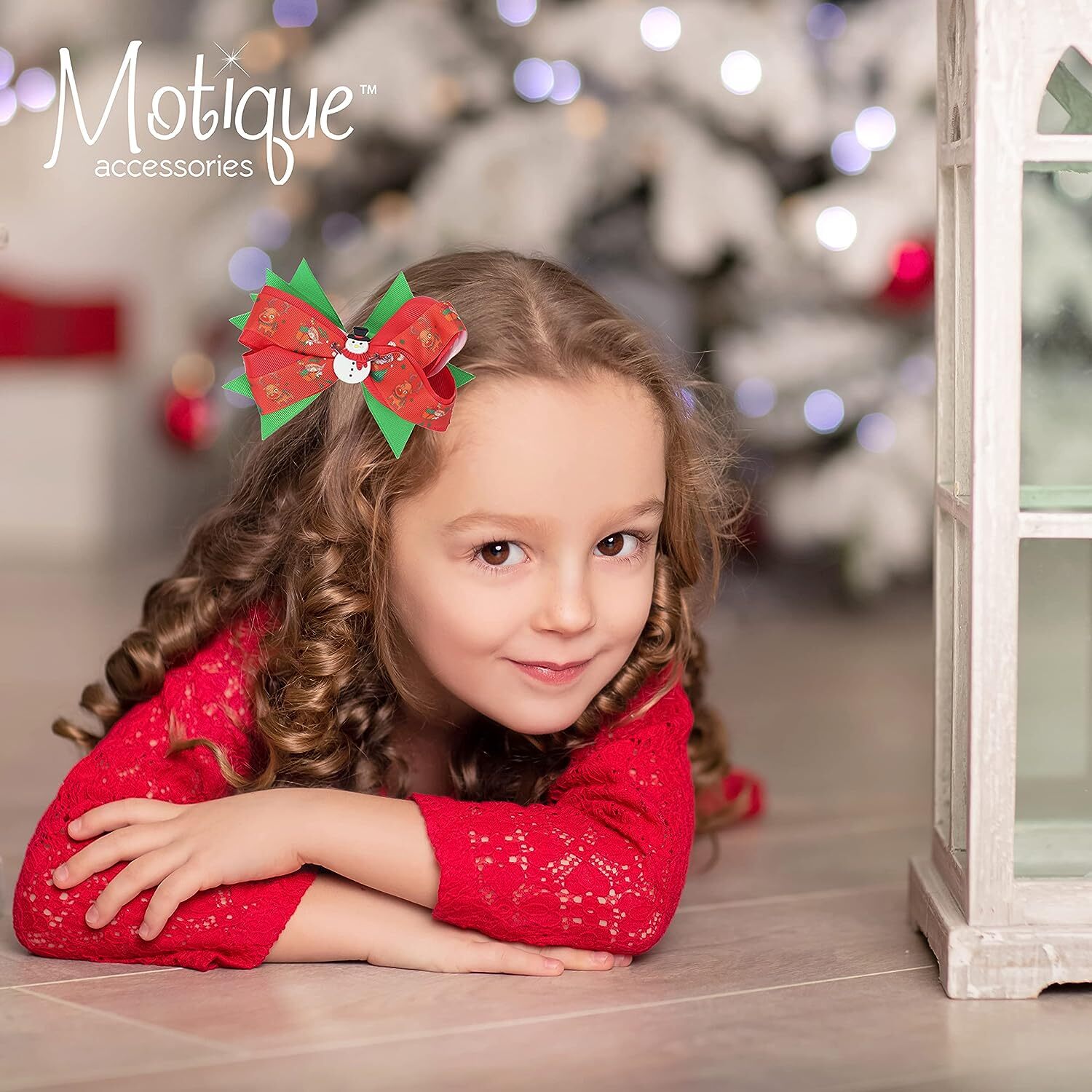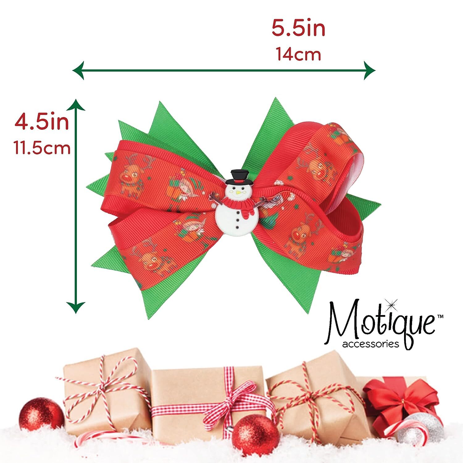 как выглядит Hair Bow Layered Christmas Bow with Silicone Charm - Red Snowman фото