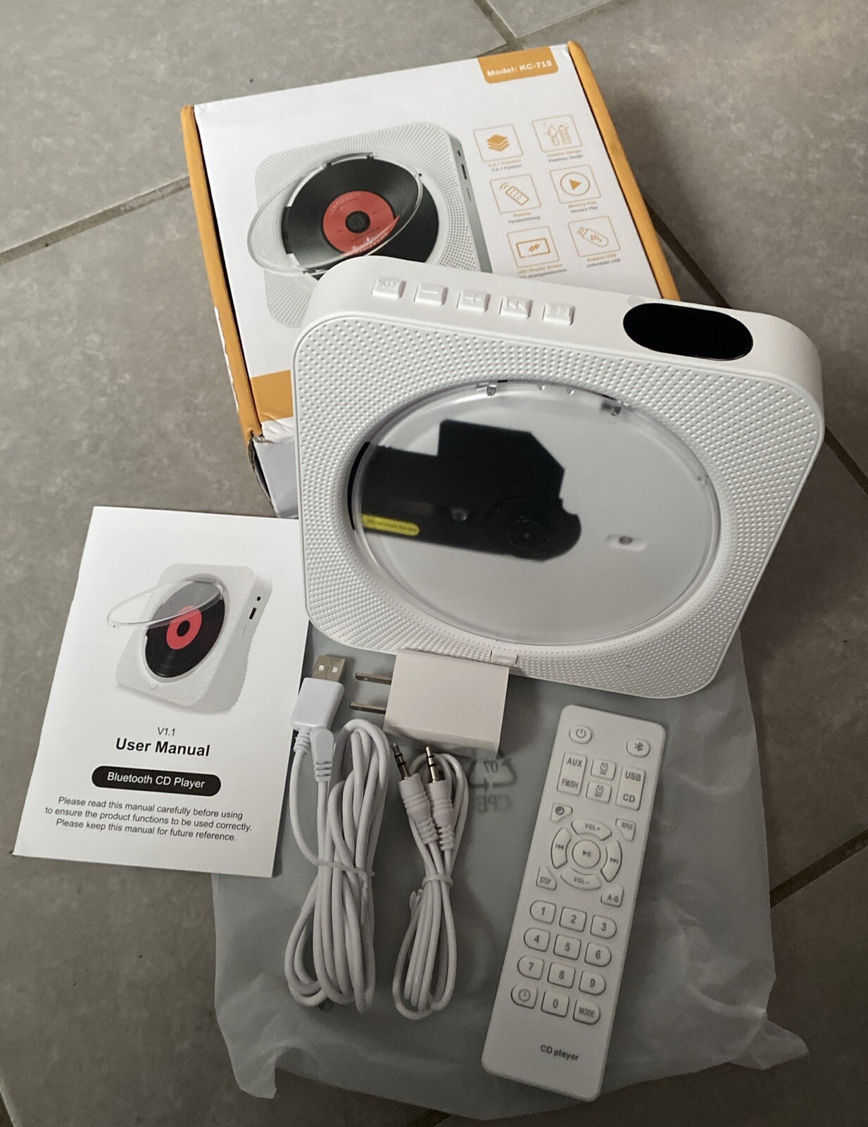 как выглядит KC-718 CD Player w/ FM Radio, Bluetooth, Aux Remote New - White фото