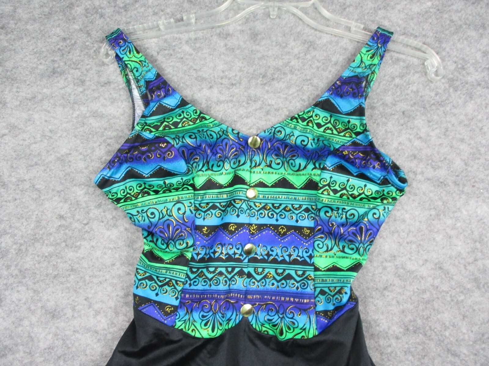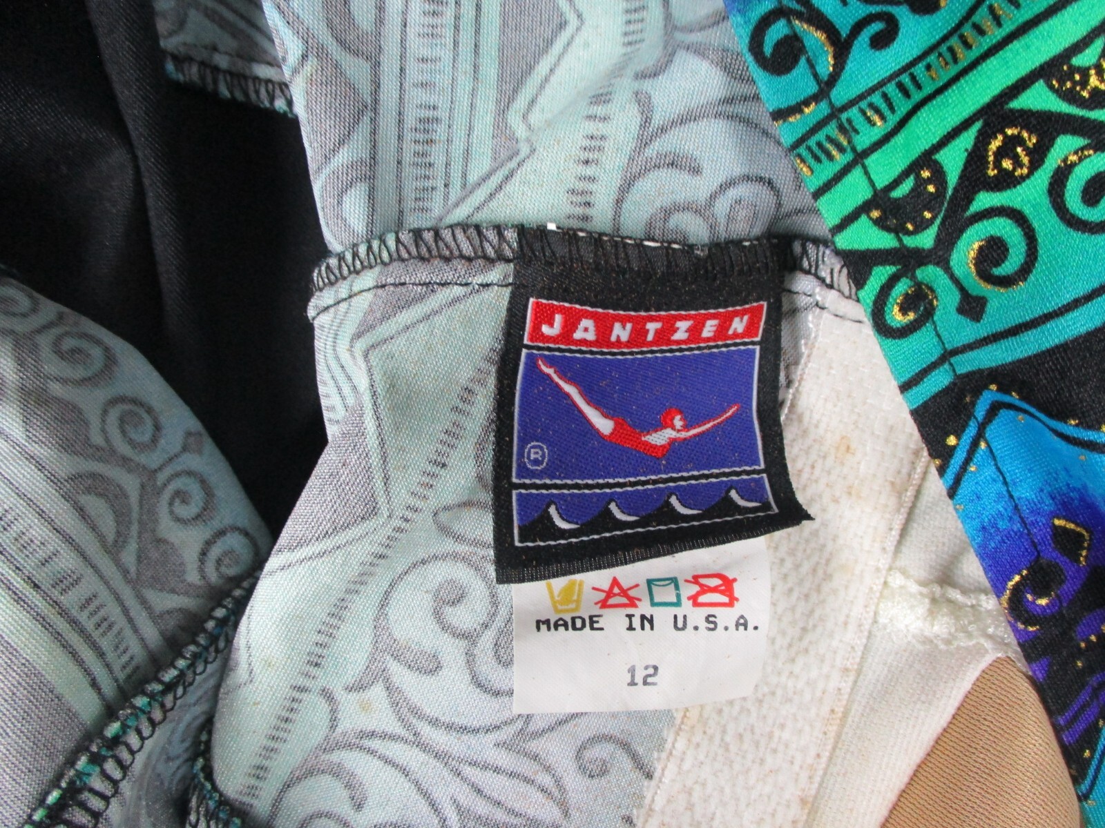 Vintage Jantzen One Piece Swimsuit Womens 12 Blue Green Vacation No Pad USA Made