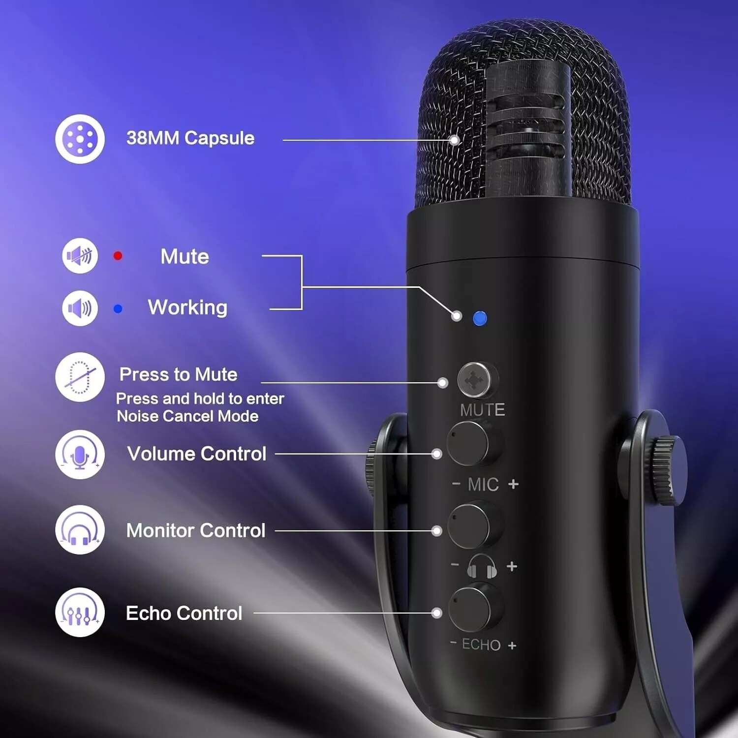 Microfono Condensador De Estudio Profesional Para PC Youtubers Podcast Negro NEW