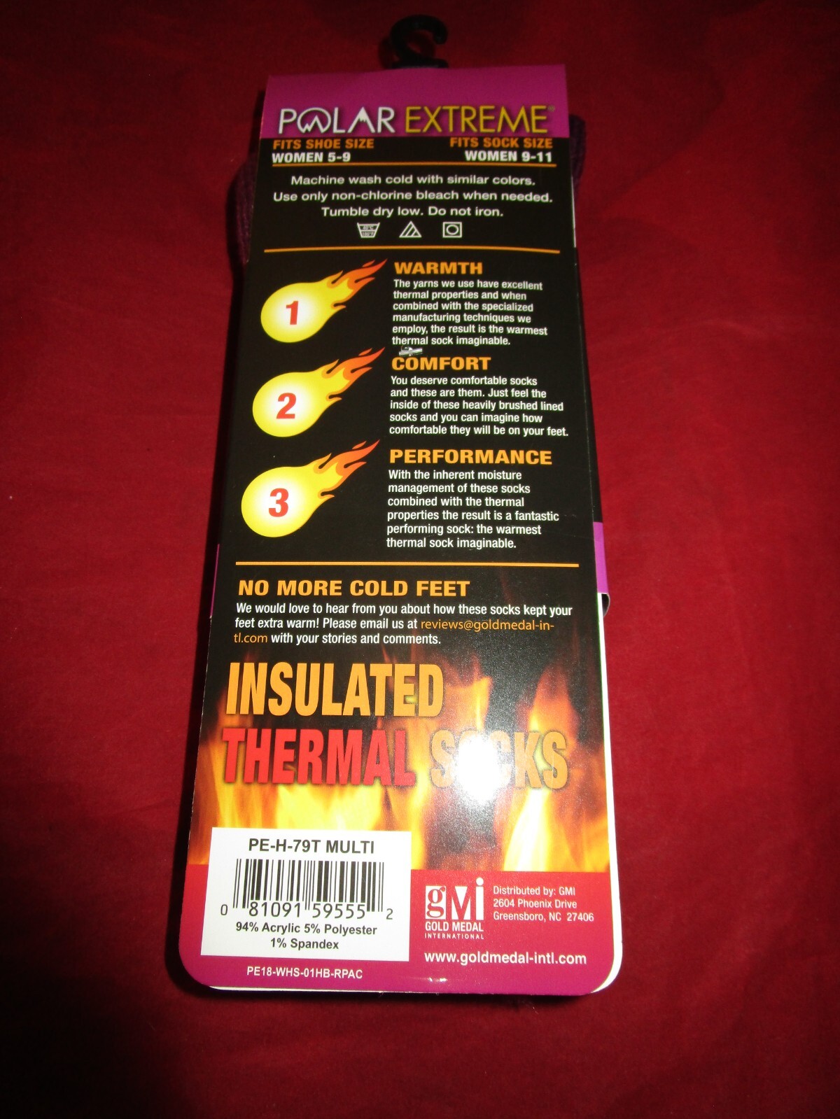 1 Pair Women Polar Extreme Thermal Socks 5-9 Maroon