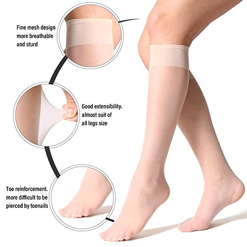 как выглядит 12 Pairs Ladys Sheer Knee High Stockings 12 Pairs Nude фото
