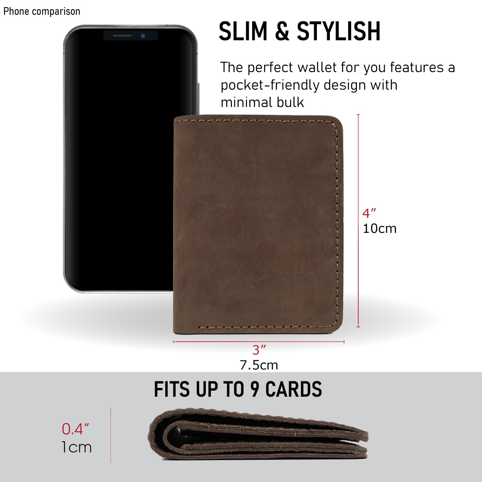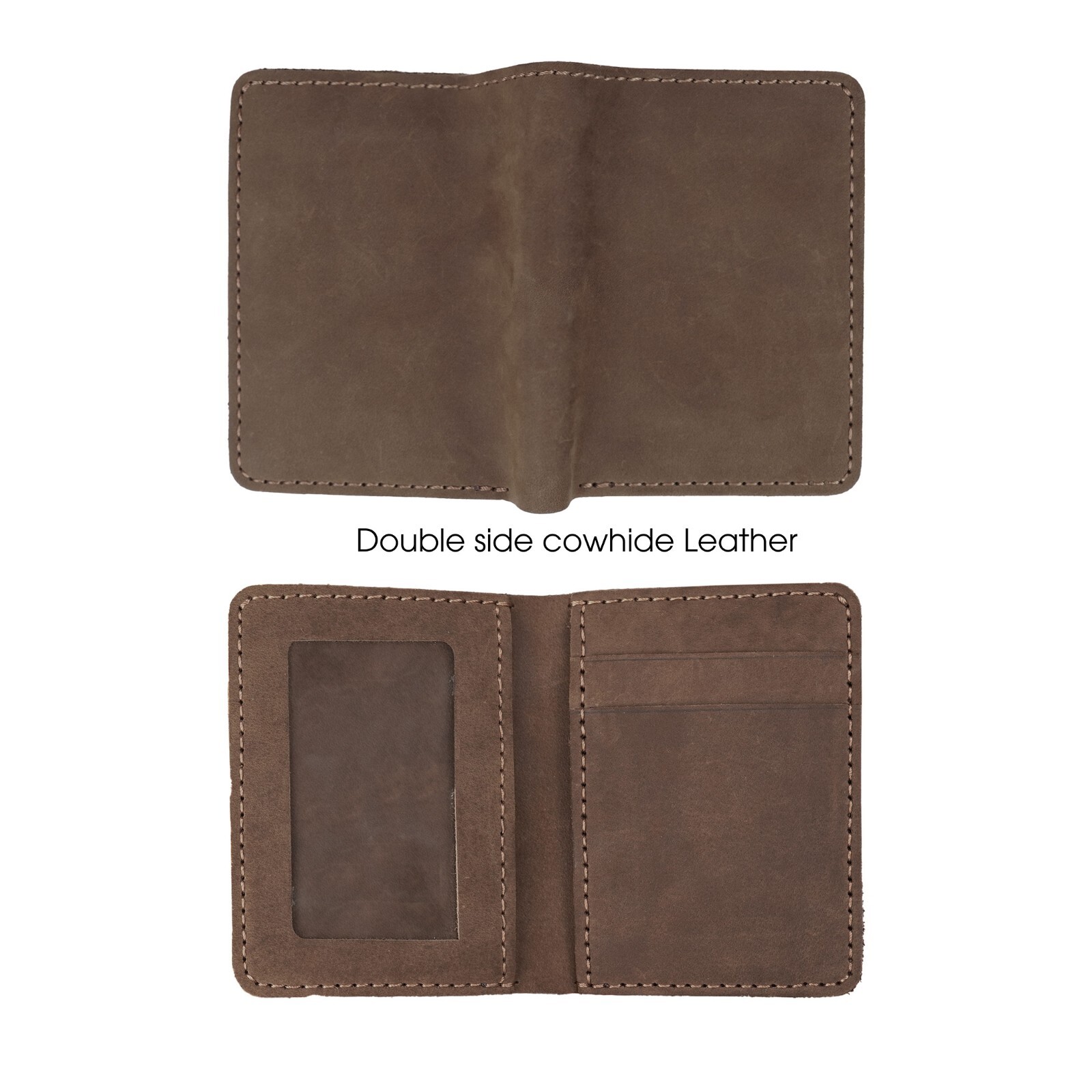 Brown Men's Bifold Vertical Wallet Real Full Grain Cowhide Skin Card Holder