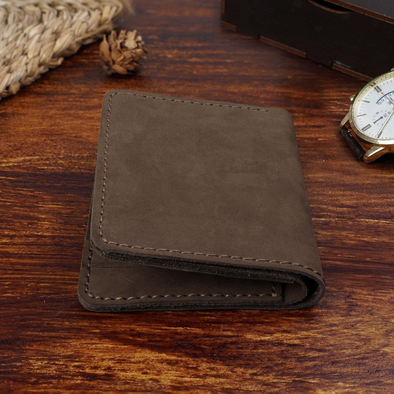 как выглядит Brown Mens Bifold Vertical Wallet Real Full Grain Cowhide Skin Card Holder фото