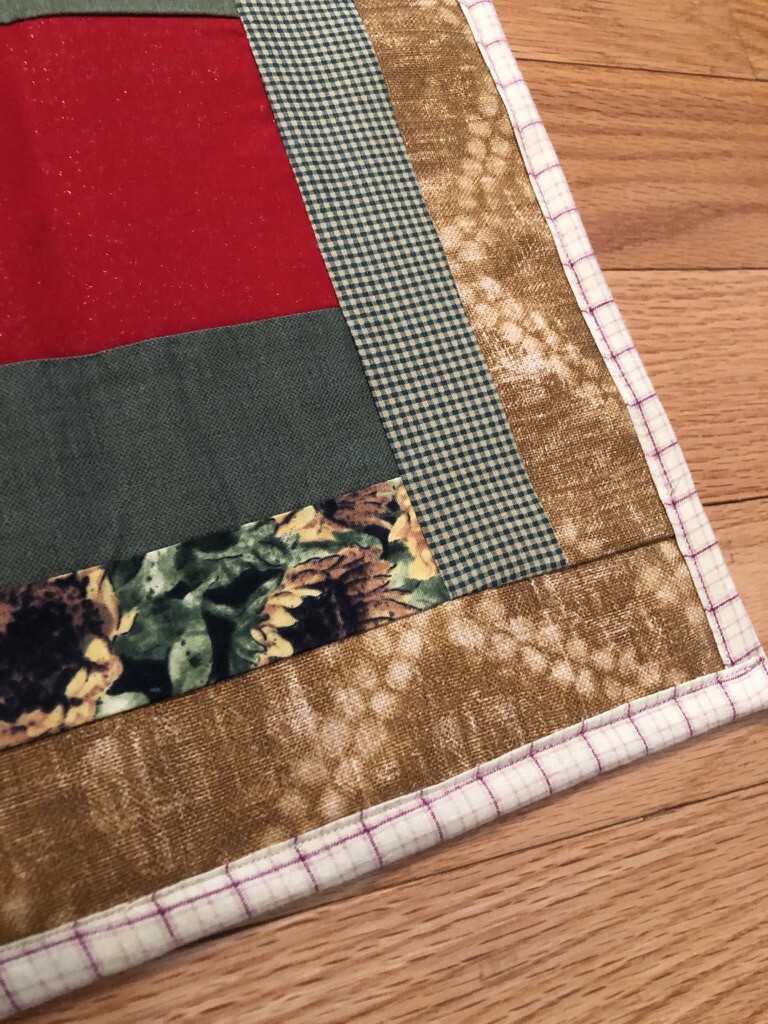 Quilted Table Topper/ Wall decoration tan, green, red 13 x 12.5 new