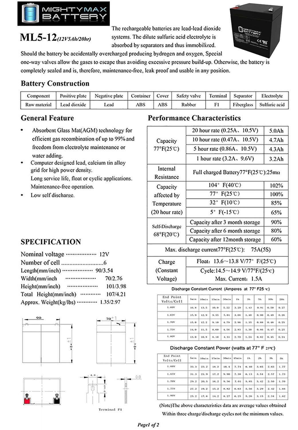 Mighty Max 12V 5AH Battery Replaces Lighting Electronics 12V 1Amp Charger