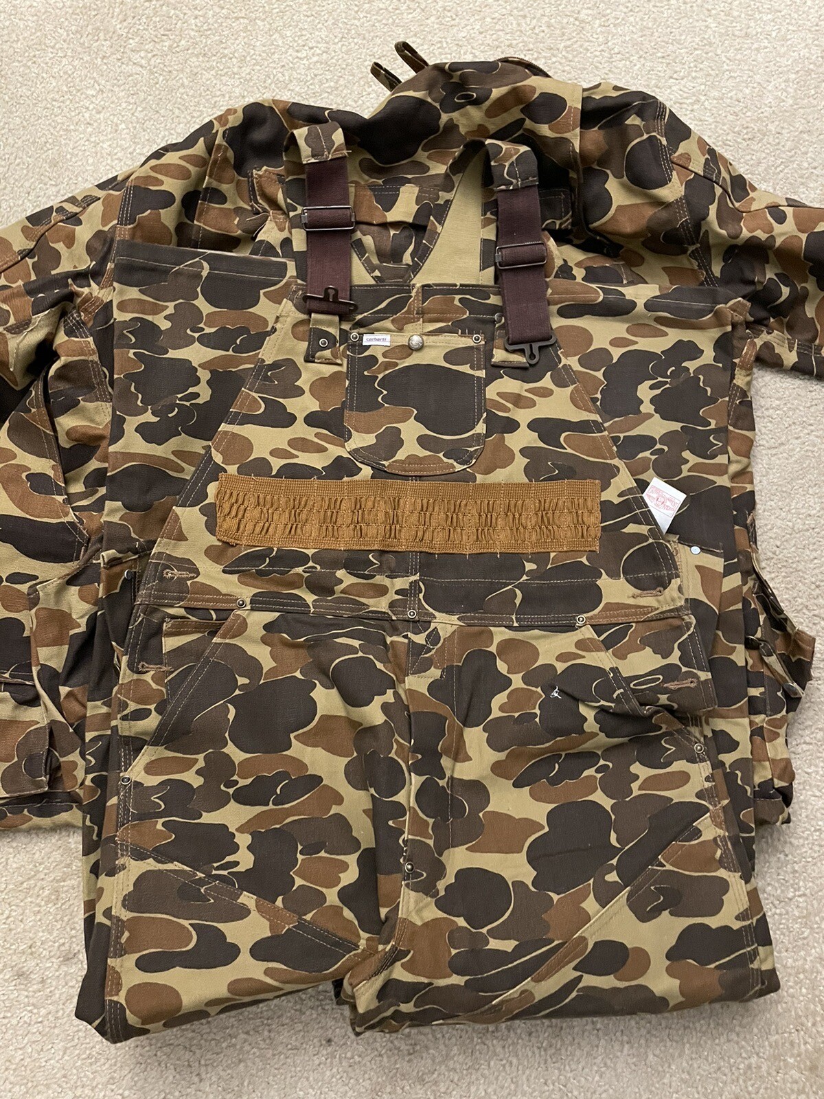NEW VTG DEADSTOCK CARHARTT USA Size Medium Camo Hooded Hunting Jacket Overalls