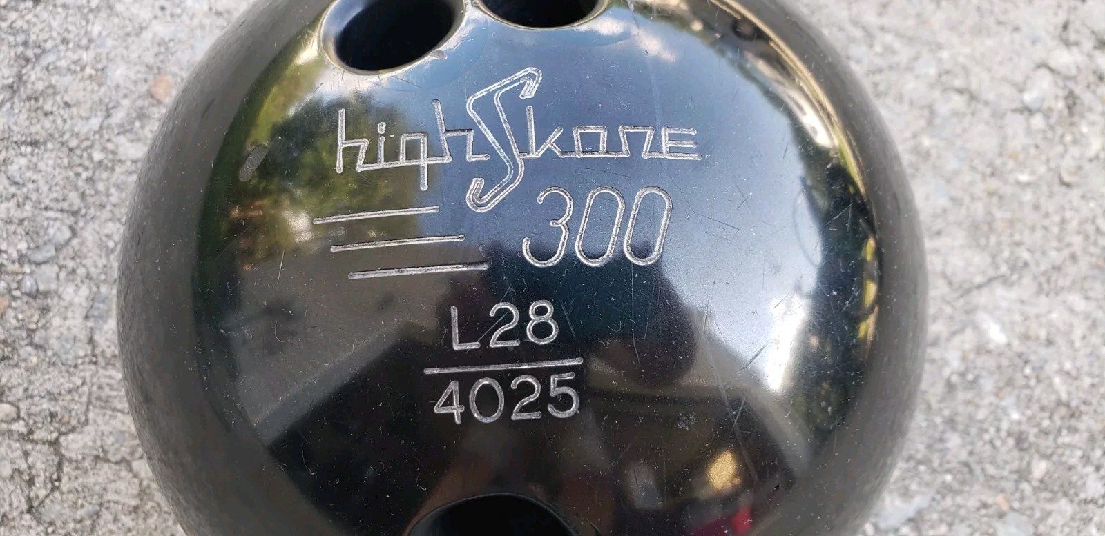 как выглядит HIGH SKORE 300 BOWLING BALL 12.60 LBS VINTAGE SOLID BLACK DRILLED "MARY T" фото