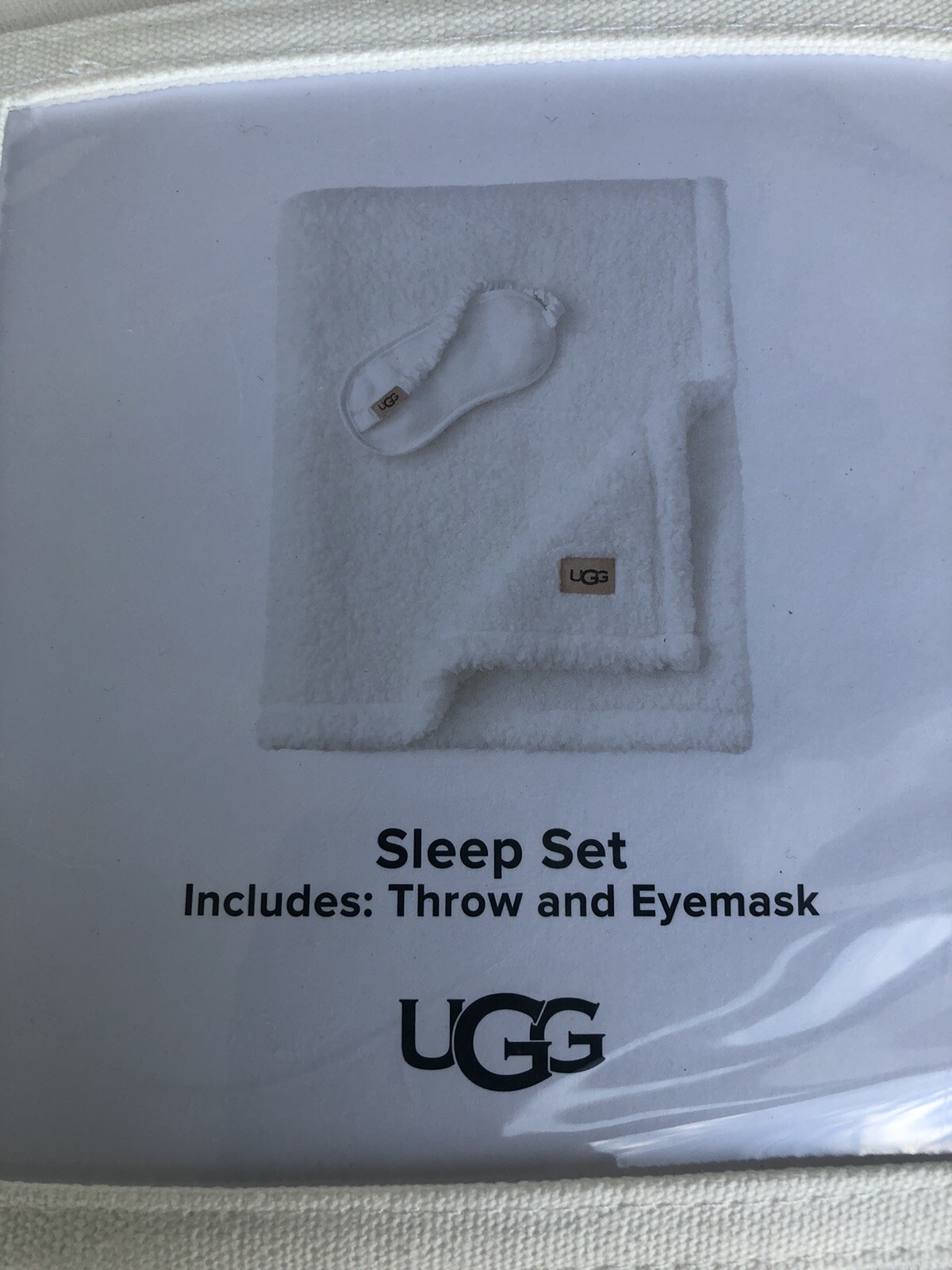 NEW Ugg Original Faux Shearling Throw Blanket Eye Mask Sleep Set Natural Ivory