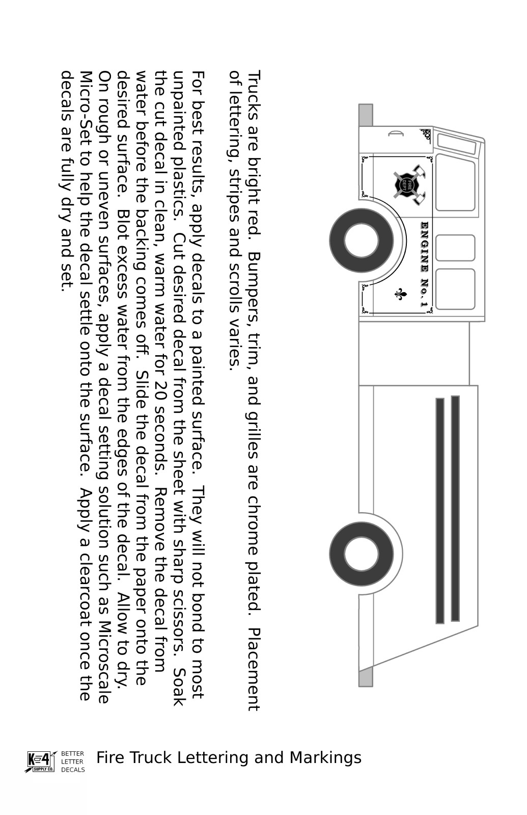 K4 G 1:24 Scale Decals Fire Engine Truck Markings Bronze, Silver and Black
