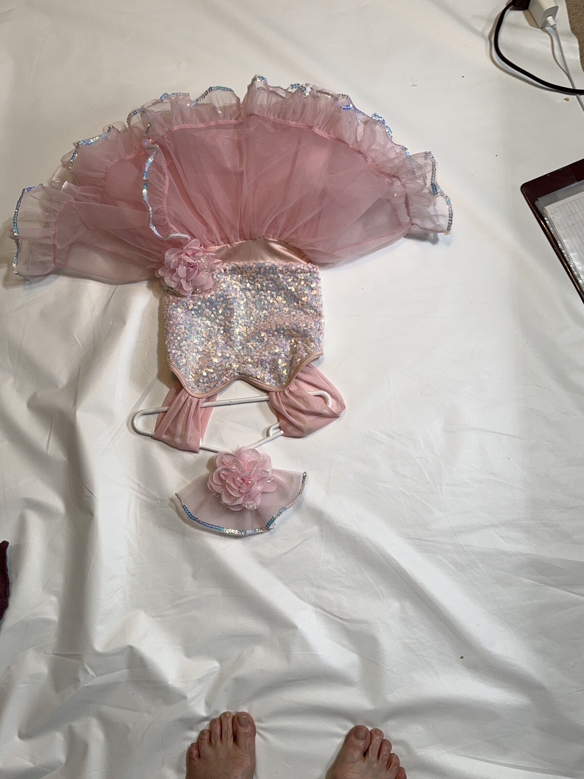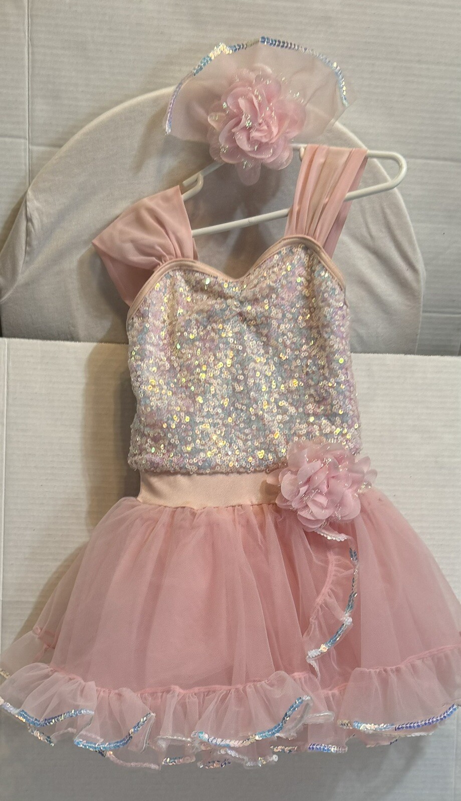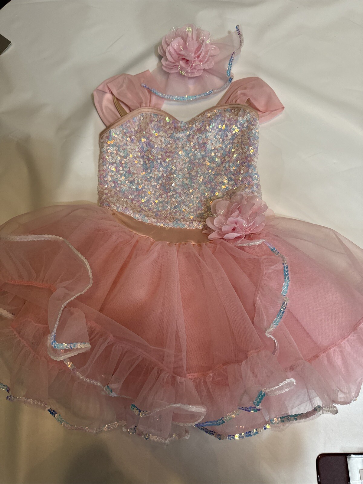 Weissman dancing costume dress Sz sm pink with sequence hair Bow to match 13547