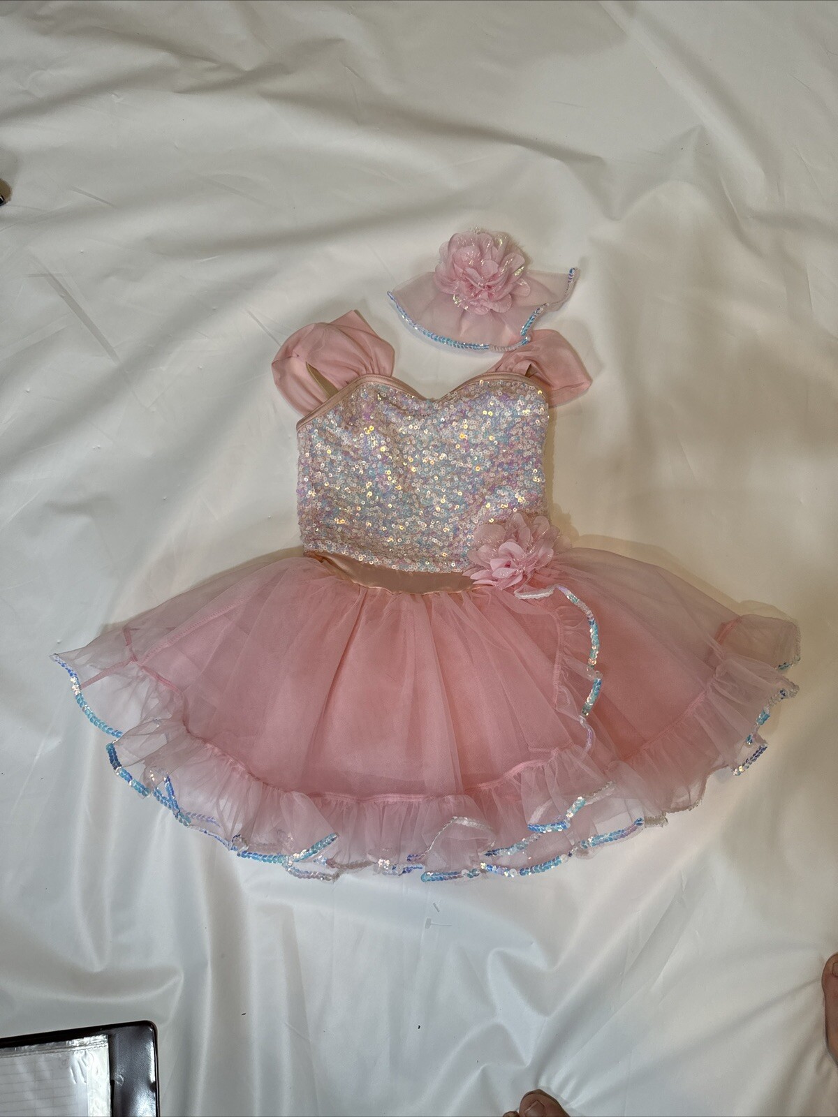 как выглядит Weissman dancing costume dress Sz sm pink with sequence hair Bow to match 13547 фото