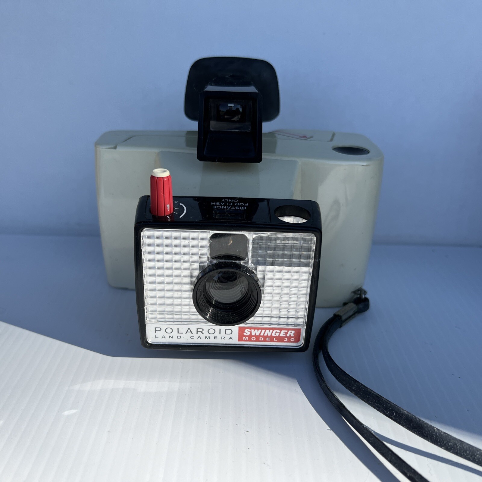 VTG 1960s Polaroid Land Camera THE SWINGER Model 20 original box, papers, strap