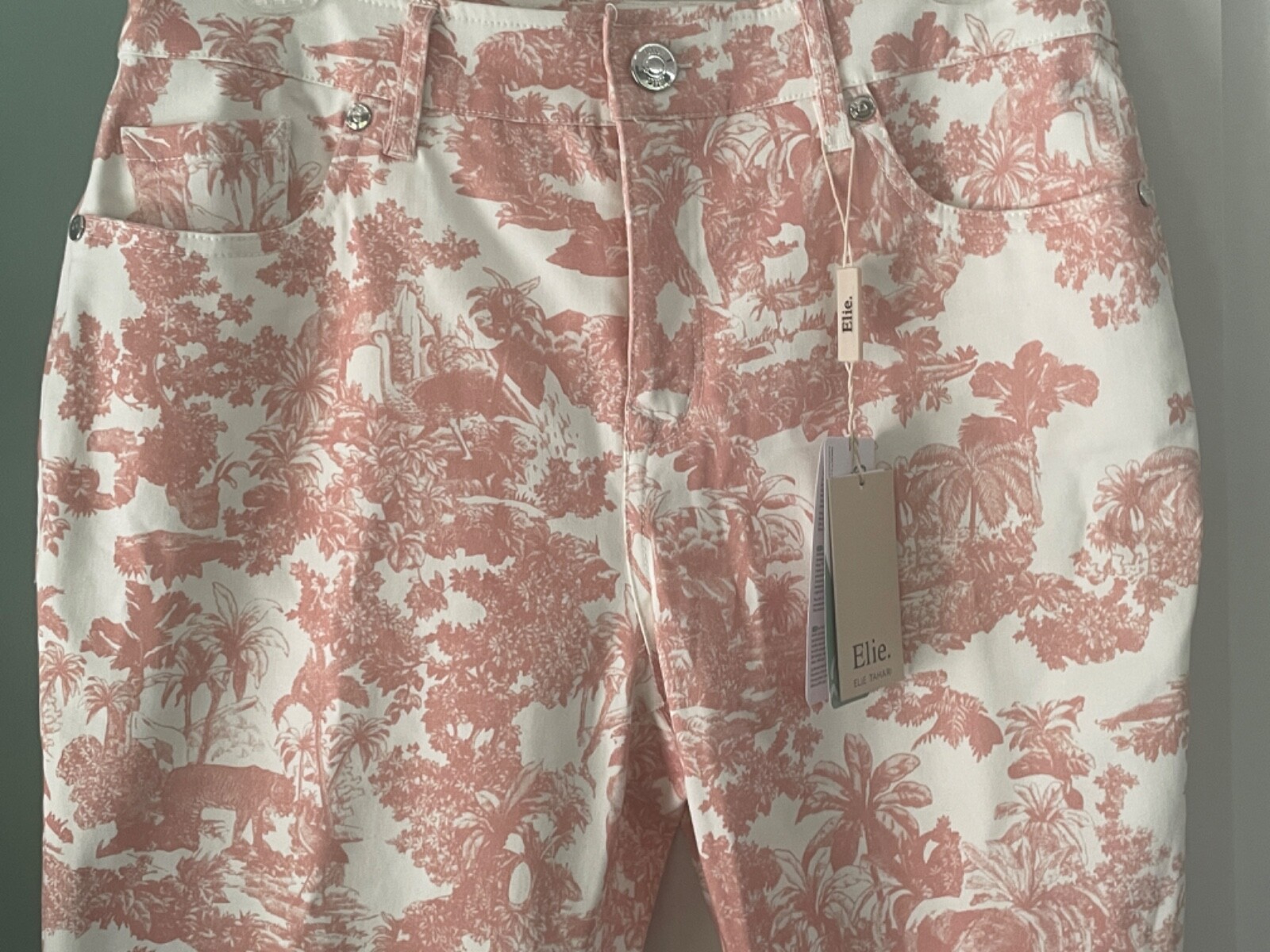 ELIE TAHARI Skinny Ankle Womens Pant White Blush Tropical Floral Tiger Havana 8