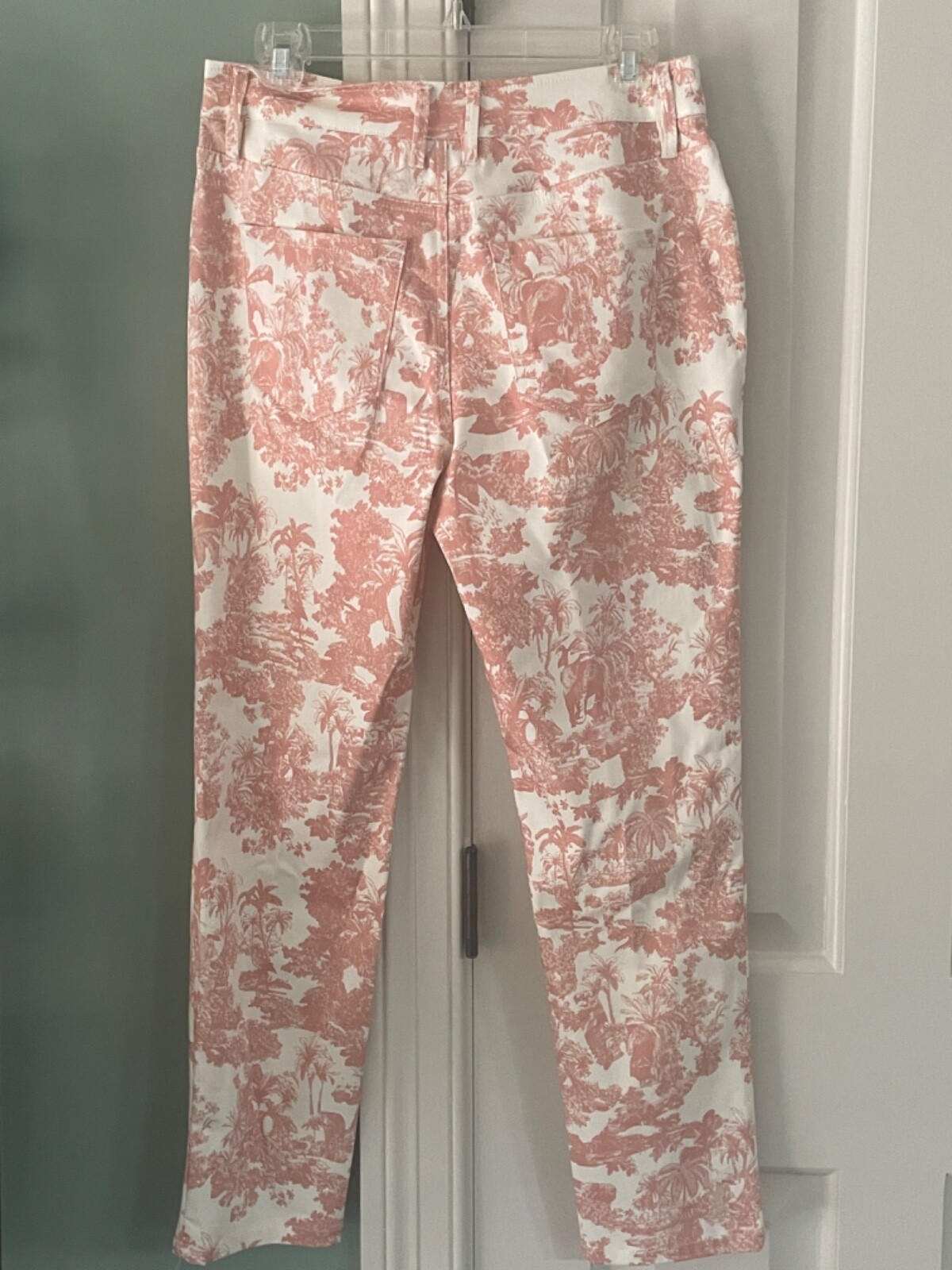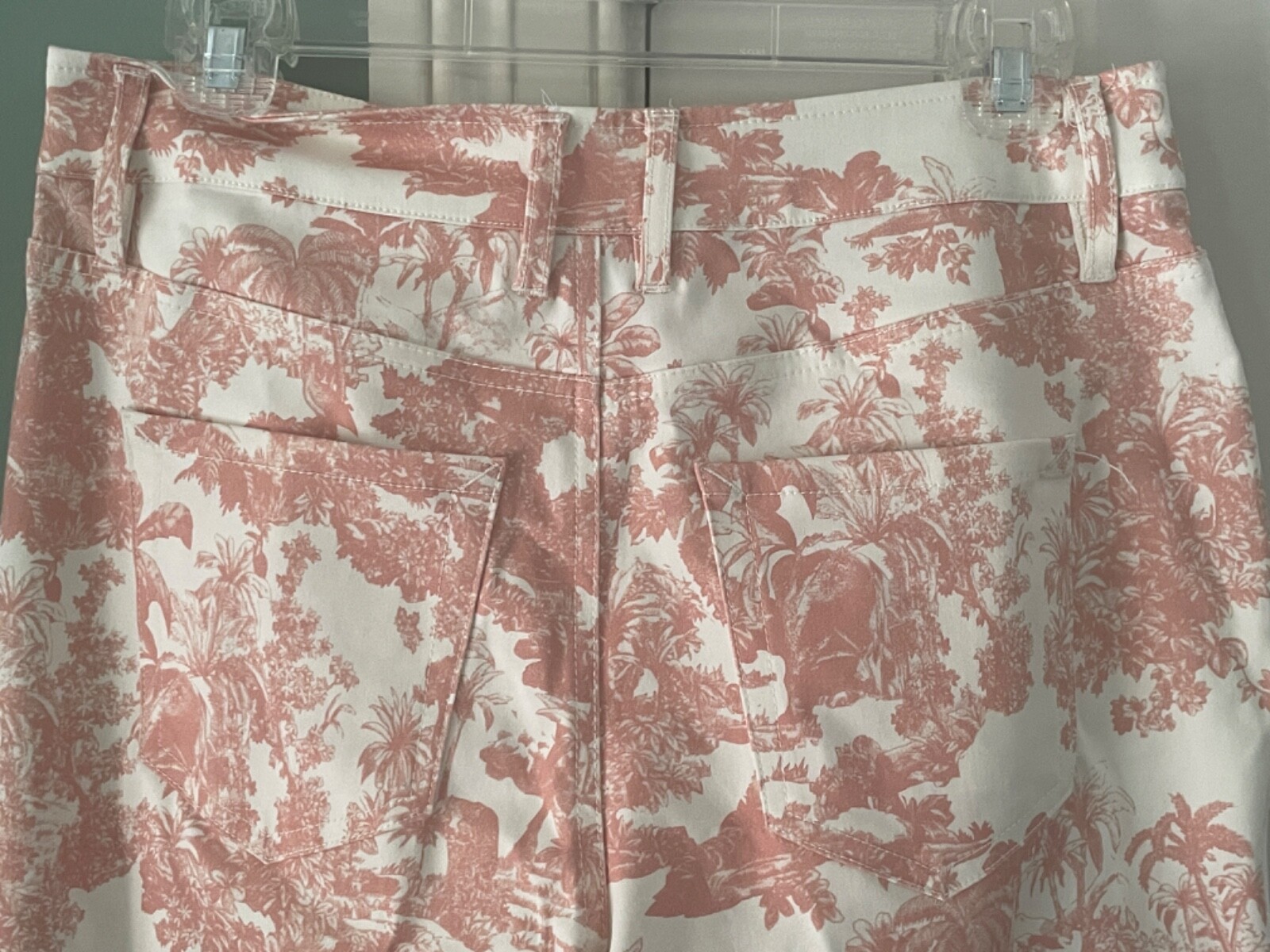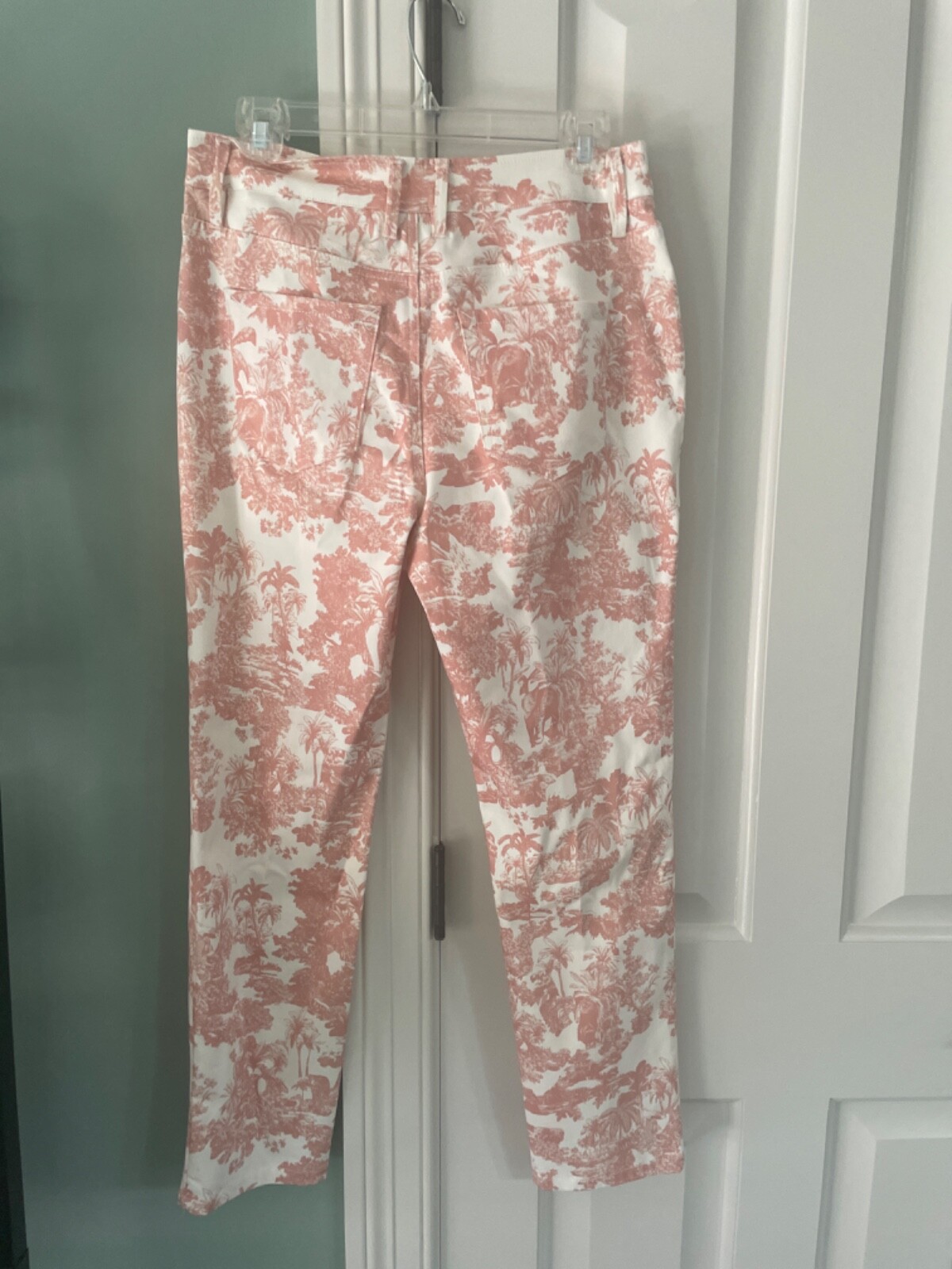 как выглядит ELIE TAHARI Skinny Ankle Womens Pant White Blush Tropical Floral Tiger Havana 8 фото