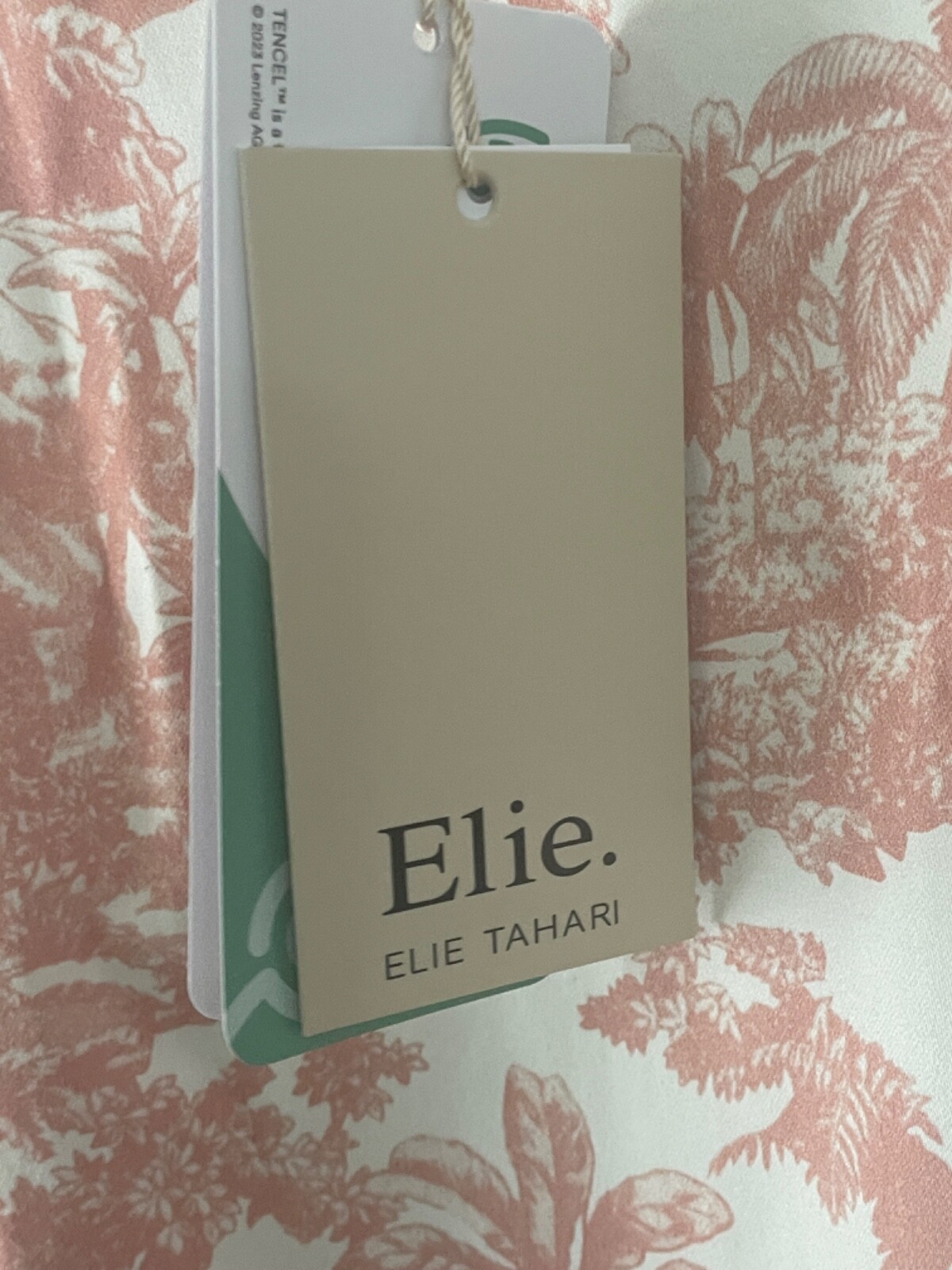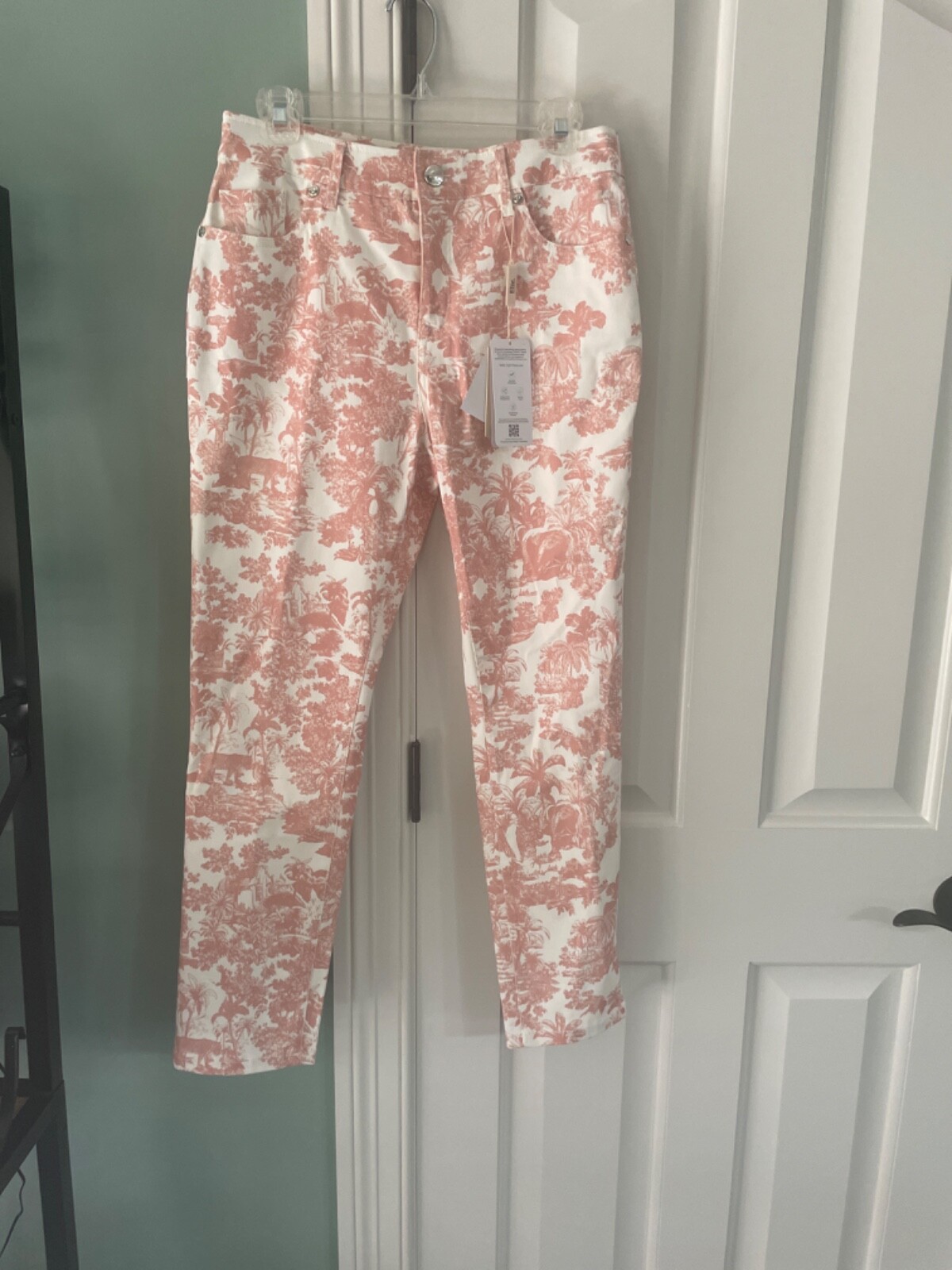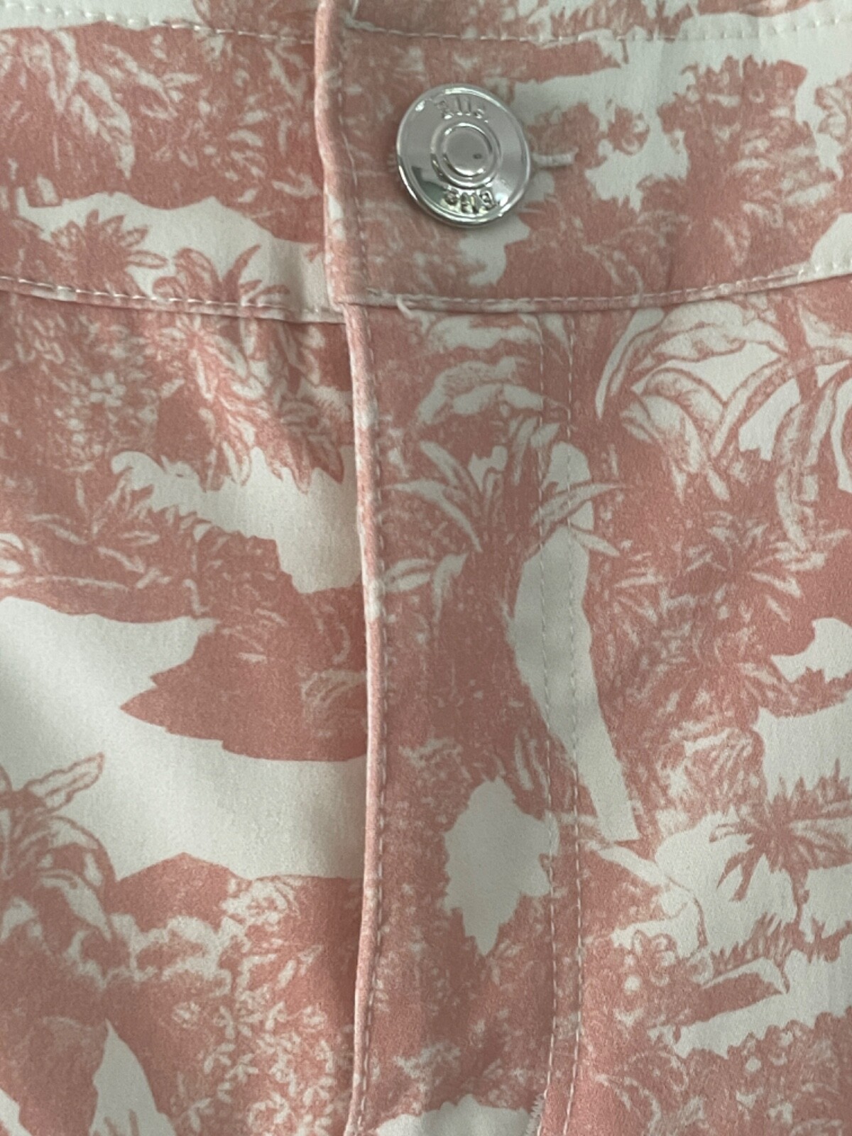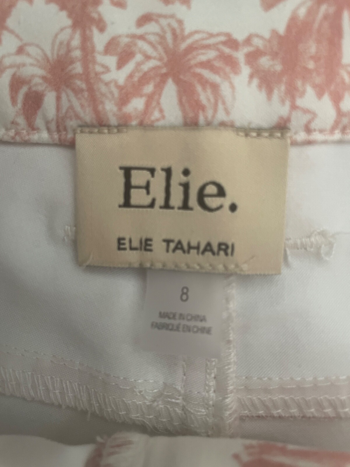 как выглядит ELIE TAHARI Skinny Ankle Womens Pant White Blush Tropical Floral Tiger Havana 8 фото