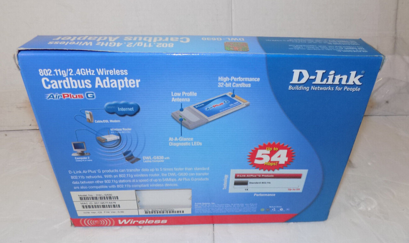 D-Link AirPlus G Model DWL-G630 Laptop Wireless Cardbus Adapter 2.4GHz