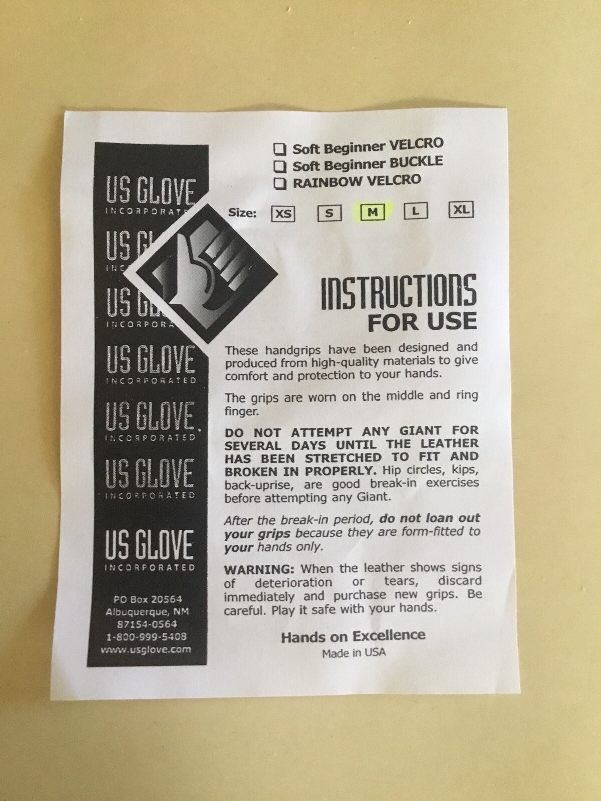 US GLOVE BEGINNER GYMNASTICS HOOK LOOP HAND GRIPS MED NEON GREEN WEIGHTLIFTING