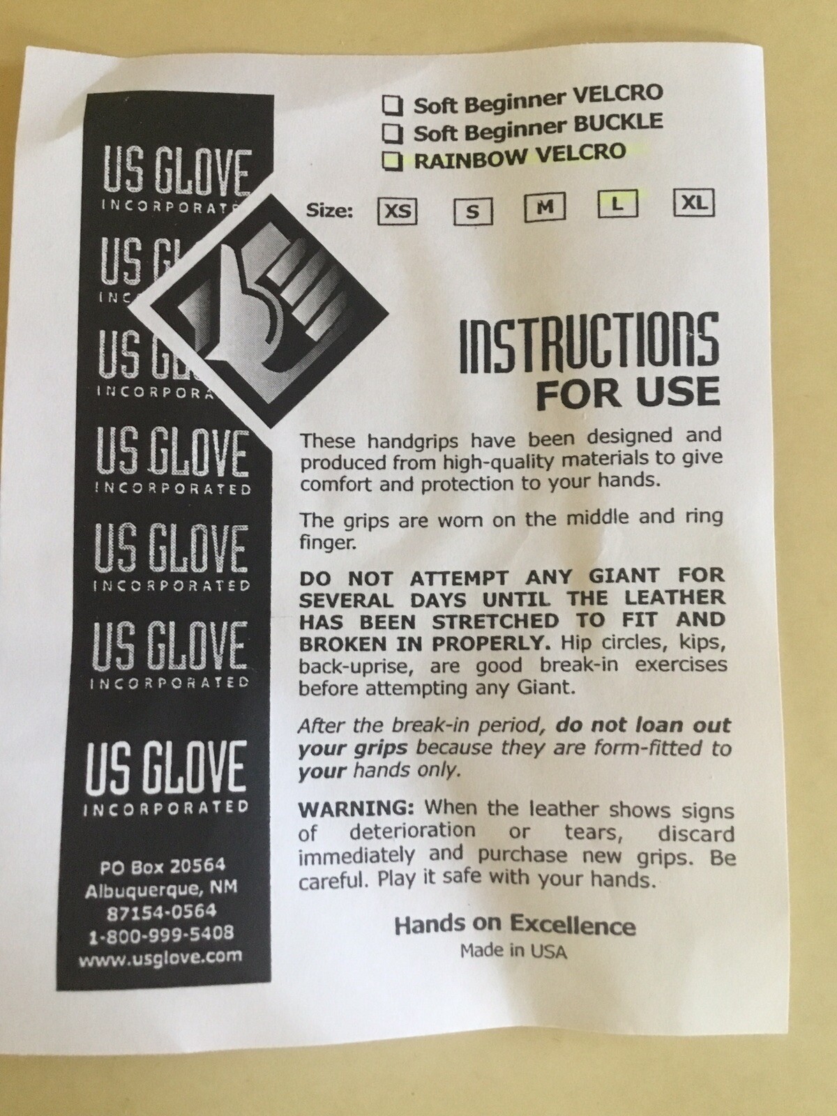 US GLOVE BEGINNER GYMNASTICS HOOK LOOP HAND GRIPS LG NEON GREEN WEIGHTLIFTING