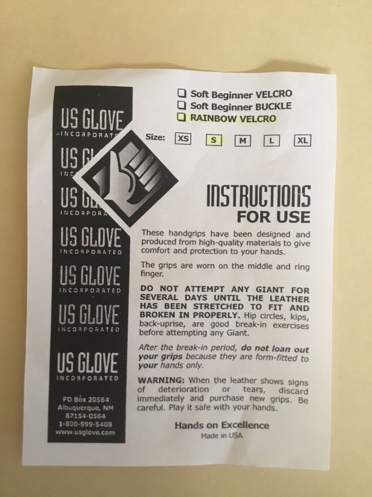 US GLOVE BEGINNER GYMNASTICS HOOK LOOP HAND GRIPS SZ SMALL WHITE WEIGHTLIFTING
