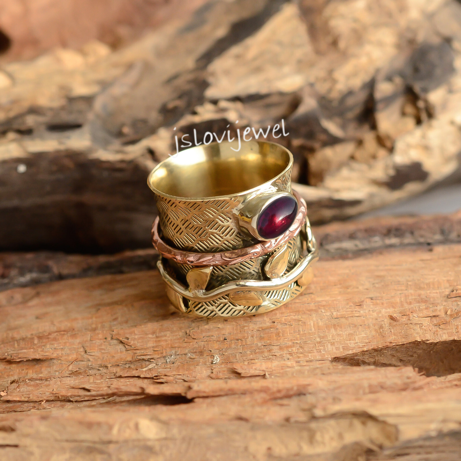 как выглядит Mozambique Garnet Gemstone 925 Sterling Silver Spinner Ring Beautiful Jewelry фото