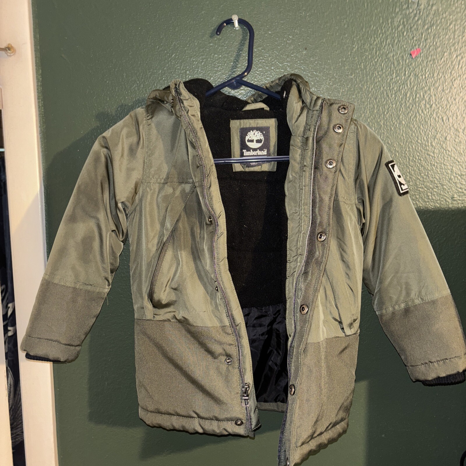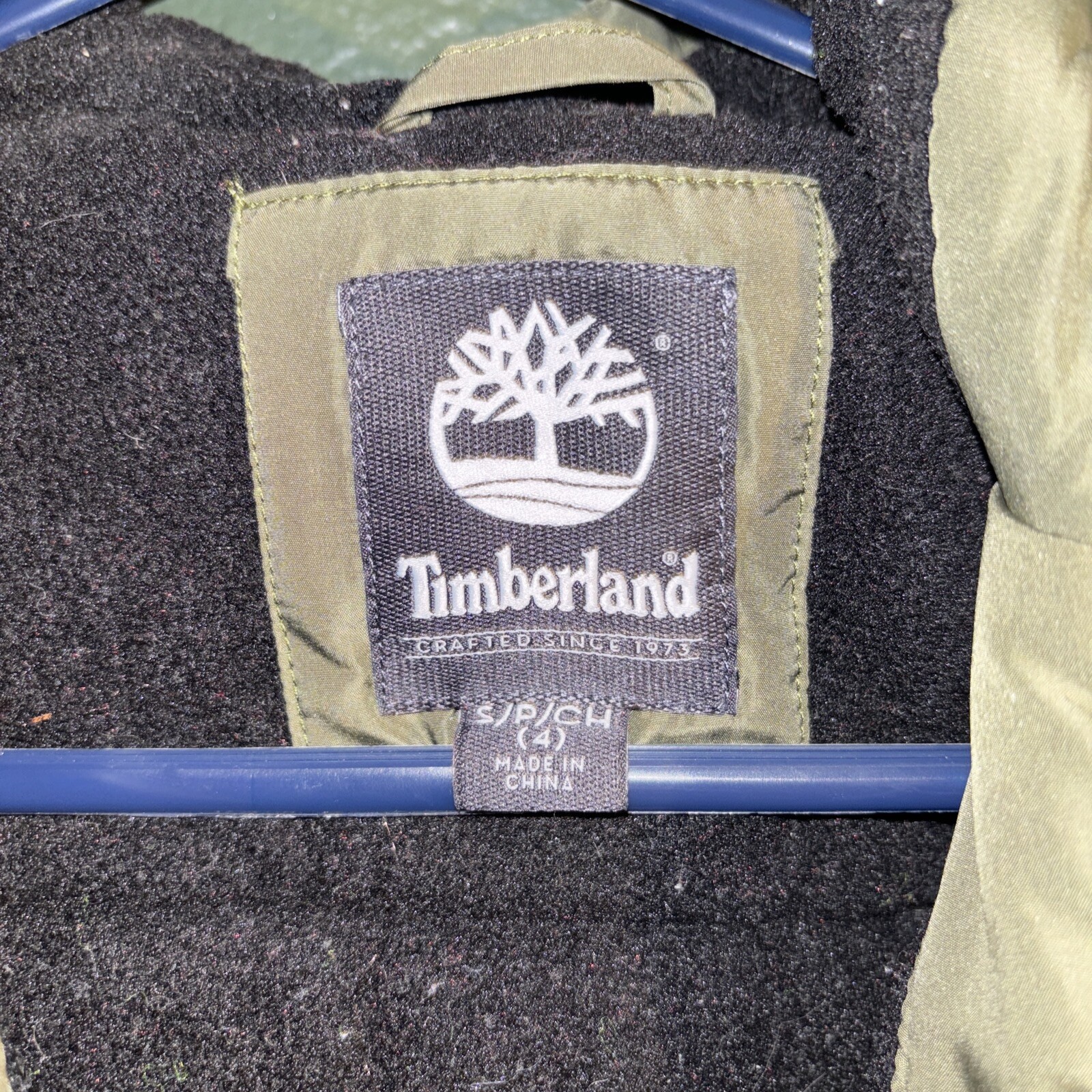 Kids Timberland Green Hooded Winter Zipper/Button Nylon Jacket Size 4 EXC Cond