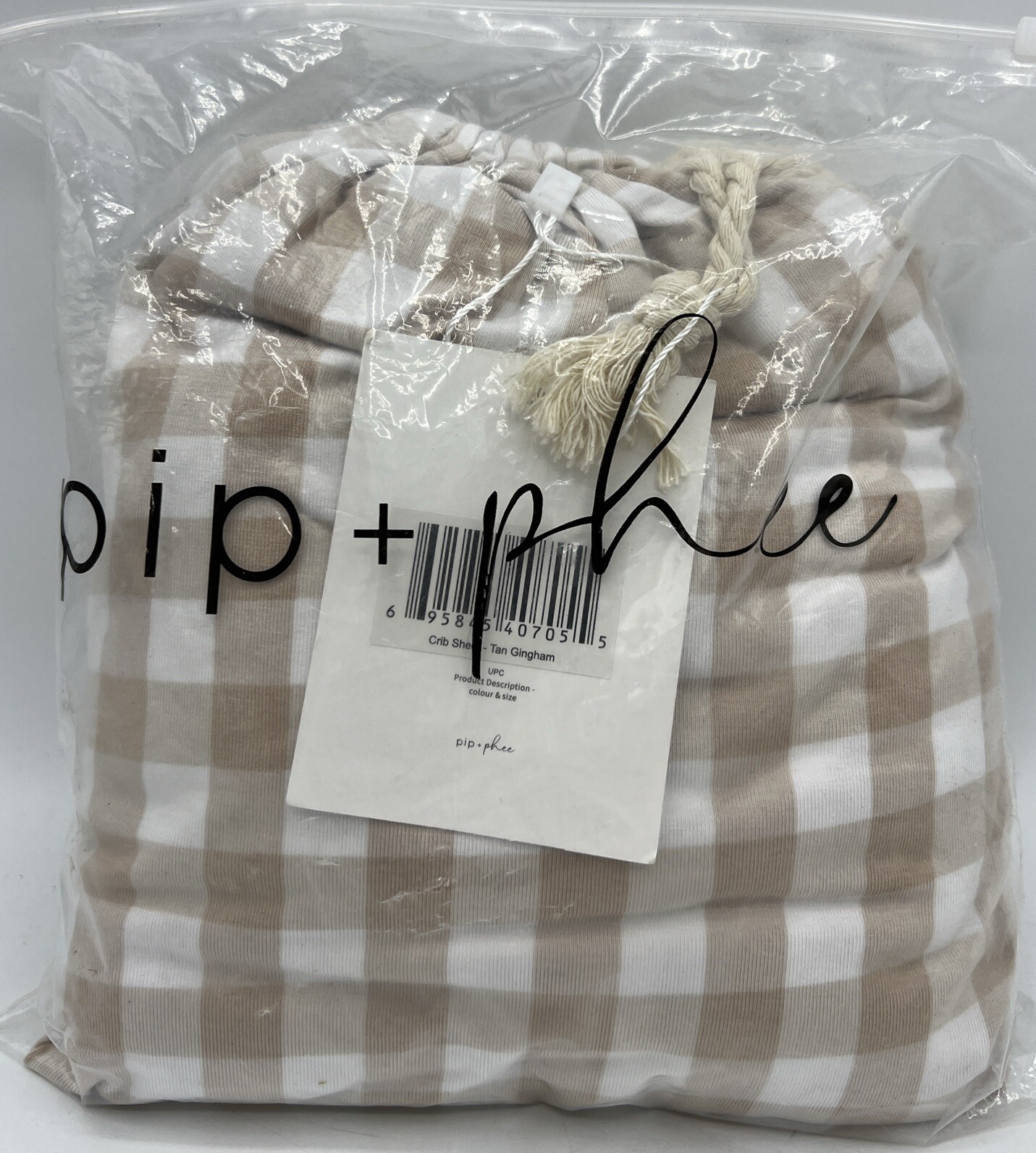 Pip Phee Bamboo Fitted Crib Sheet Nude Tan Gingham Plaid 52 x28 Baby Checker