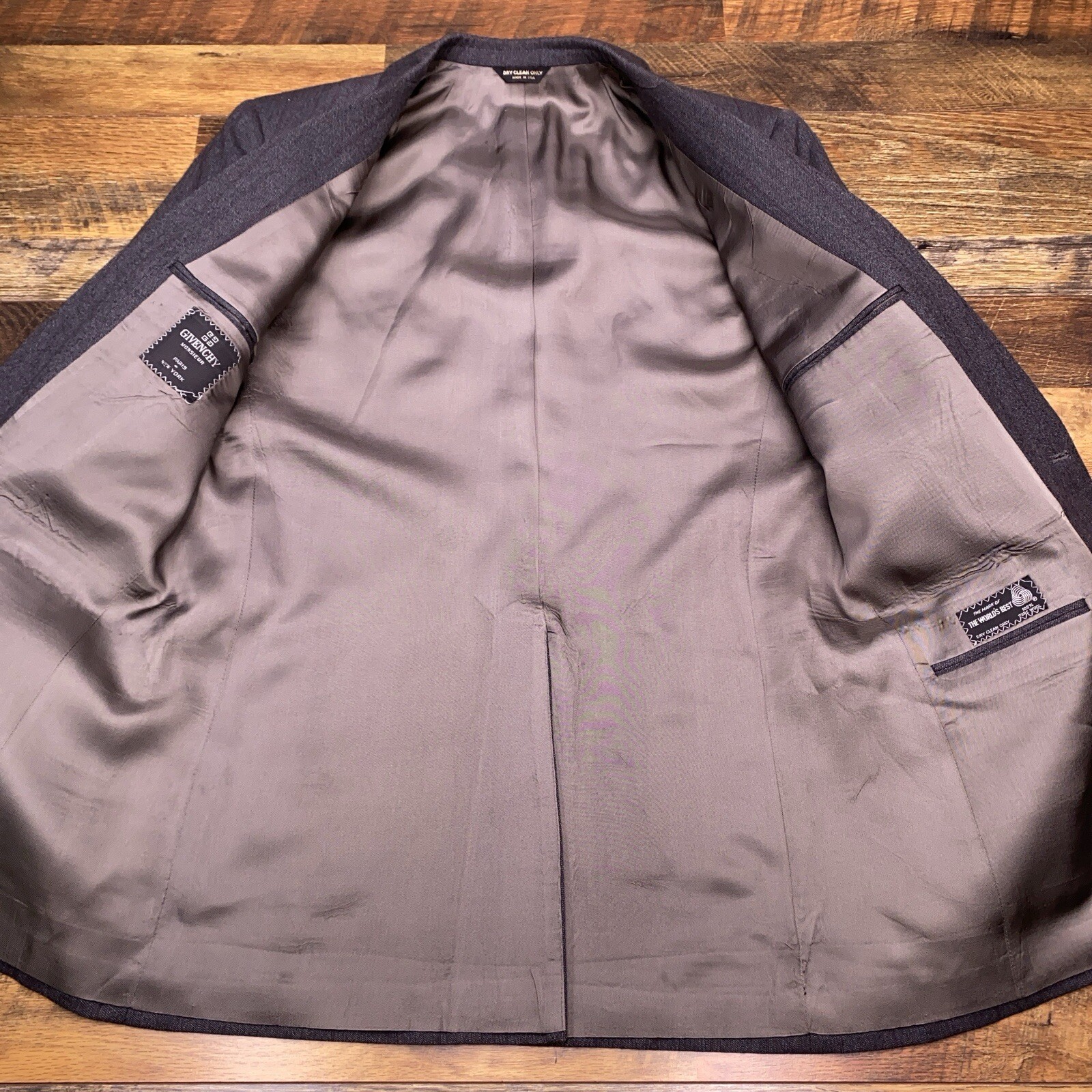как выглядит Vintage Givenchy Monsieur Suit Jacket 40R Gray Wool USA Blazer Striped фото