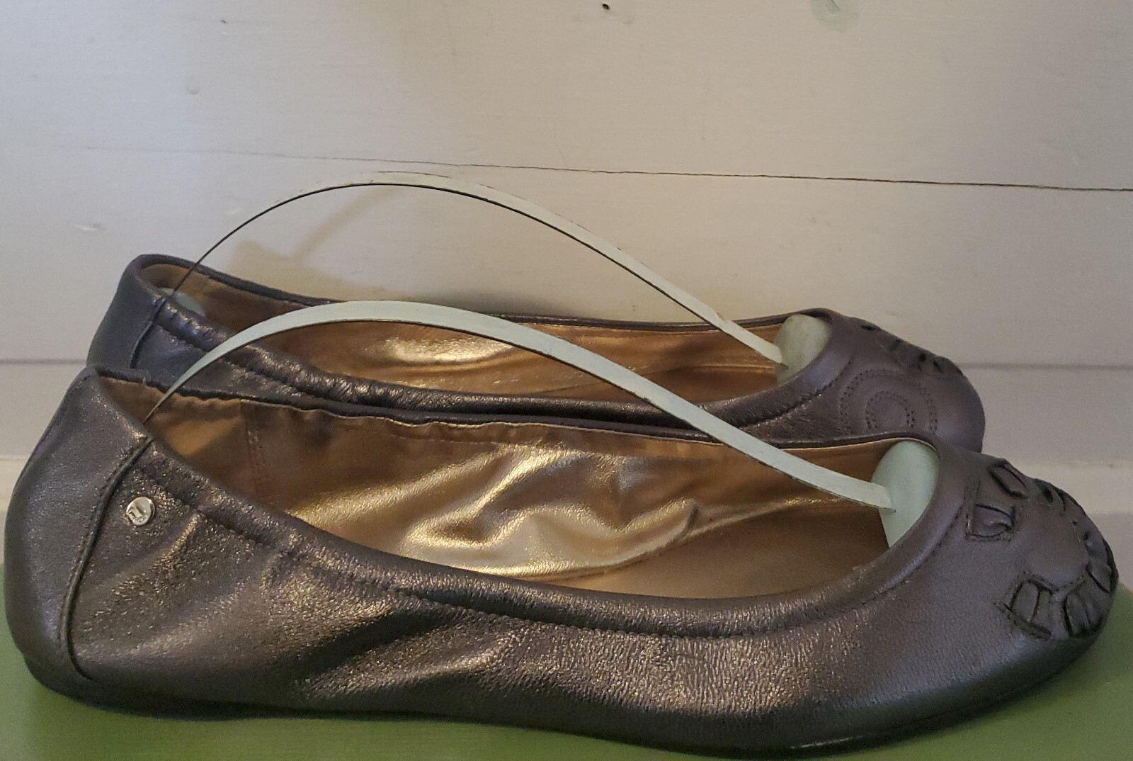 как выглядит COACH " DELICATE" Soft Silver Leather Ballet Flats Sz 7.5 фото