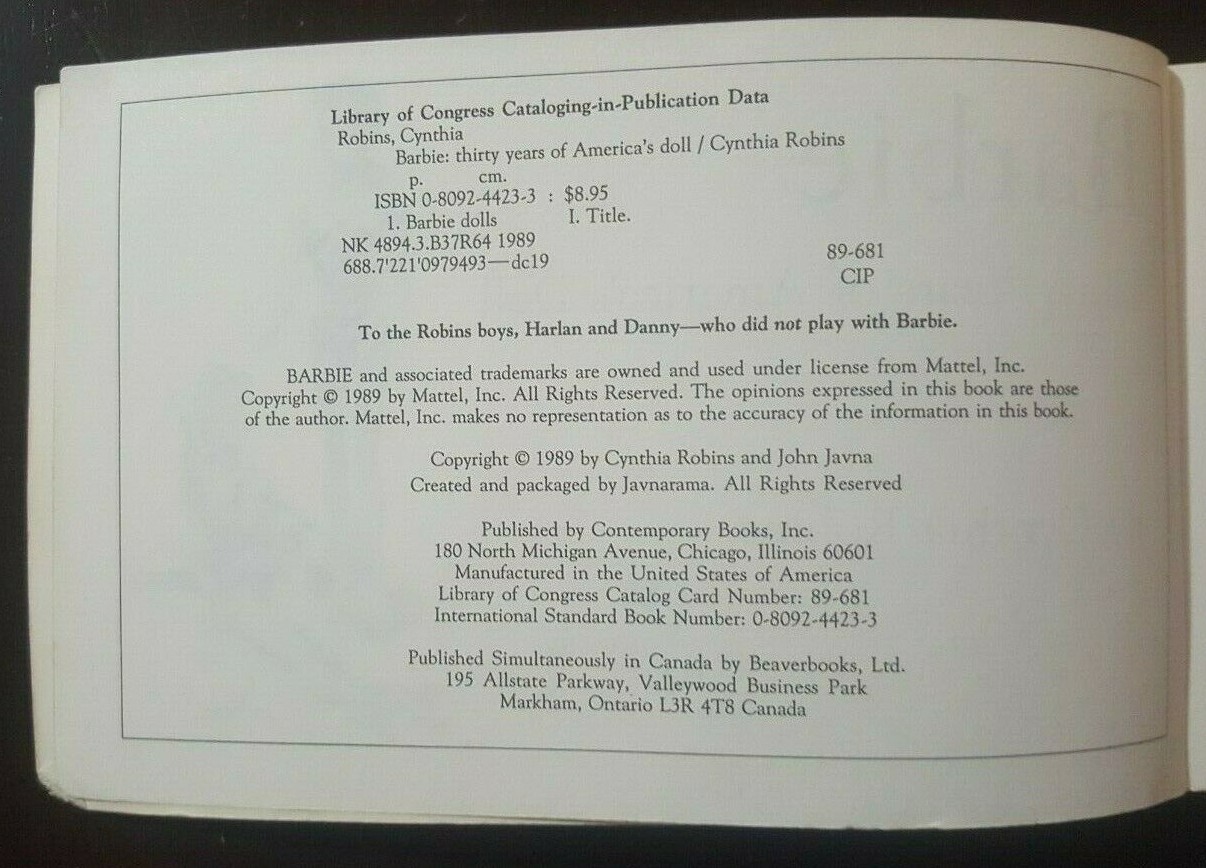 как выглядит Barbie: Thirty Years of Americas Doll Cynthia Robins 128 Pages Softcover 1989 фото
