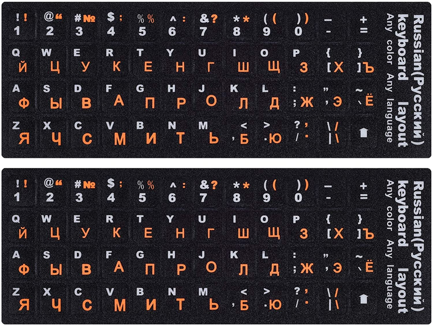 как выглядит 2PCS Russian-English Keyboard Stickers, Orange Cyrillic Letters for PC/Laptop фото