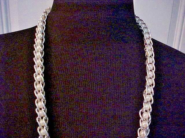 Womens Neck Scarf with Faux Pearl Chain Necklace Pink Gold, Green 15 Drop